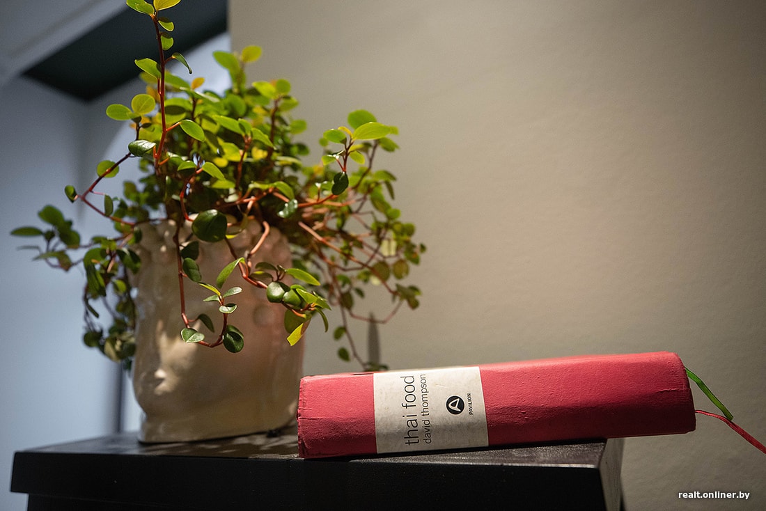 Обожаю заведения с витринными окнами — они создают определенное настроение, заточенное на прием пищи и размышления о вечном. Thai Garden повезло с помещением: простор, высокие потолки и прекрасные окна. Описывая дизайн простыми словами, можно сказать так: белое полотно стен украсили деревом и растениями. В целом — ничего нового.