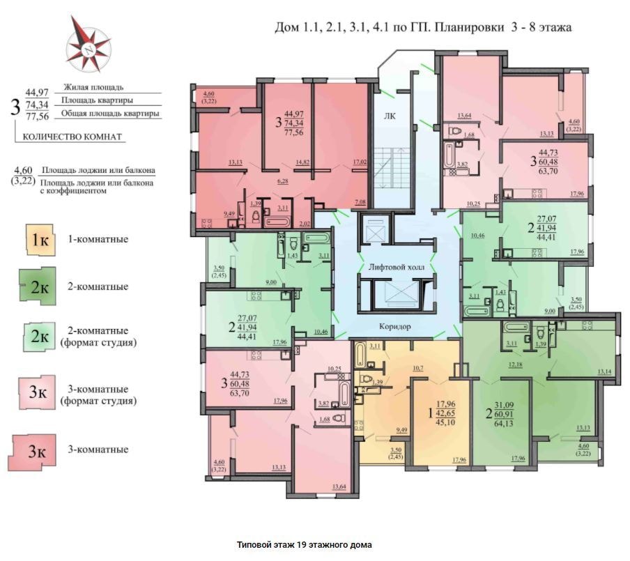 Надо сказать, многоэтажки разных серий, поэтому планировки квартир в домах разные. К примеру, в 19-этажке (серия 111-90) есть евродвушки и евротрешки. Особенность 16-этажного дома (серия М-464-М) — сквозной подъезд и отсутствие несущих стен внутри квартир. В 10-этажке (серия М-464-У) также проходной подъезд, из вариантов квартир — двушки и трешки.