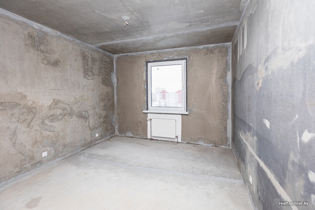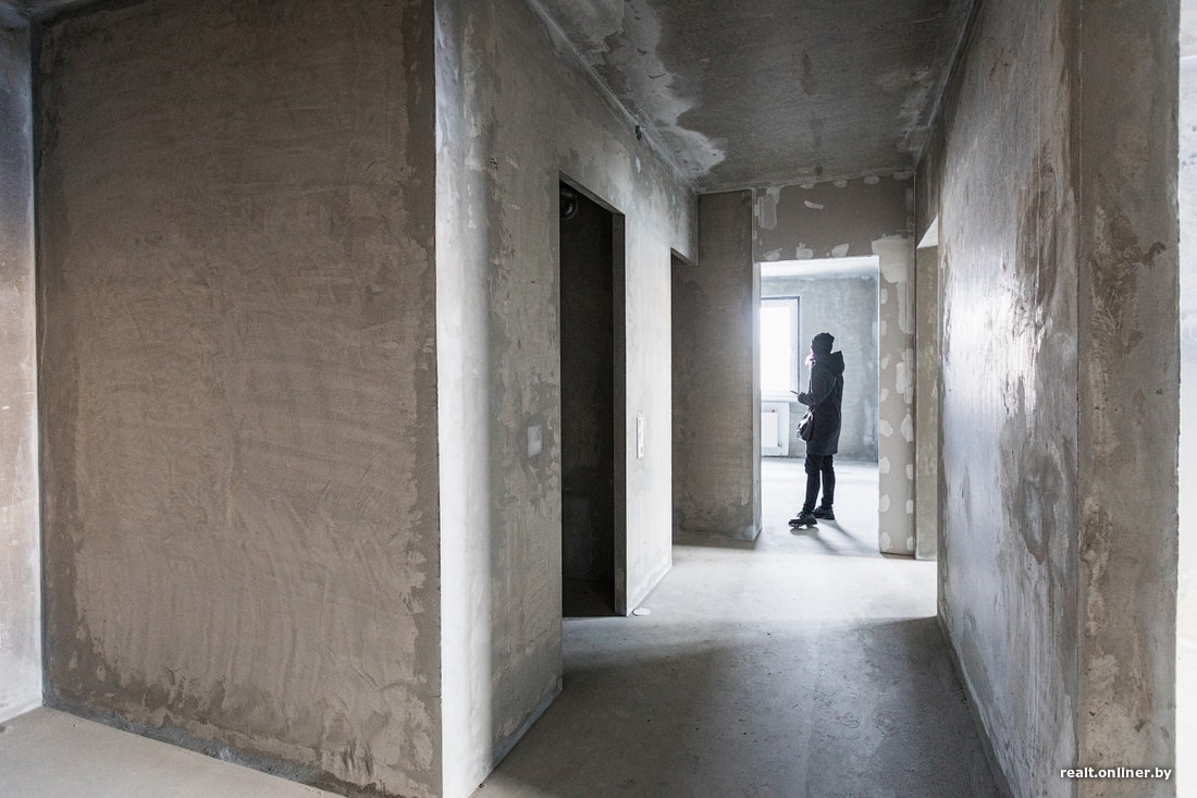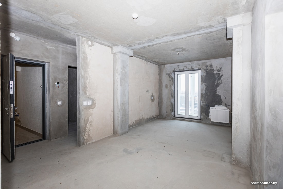 Нам удалось побывать в нескольких еще непроданных готовых квартирах. Так как это панельки, то особых «косяков» на глаз не заметили. Планировки неплохие, чуть не хватило размаха окон, смутили несущие колонны в некоторых квартирах. Сдаются помещения с черновой отделкой, электрика проведена, радиаторы и розетки установлены. Выглядят квартиры вот так:
