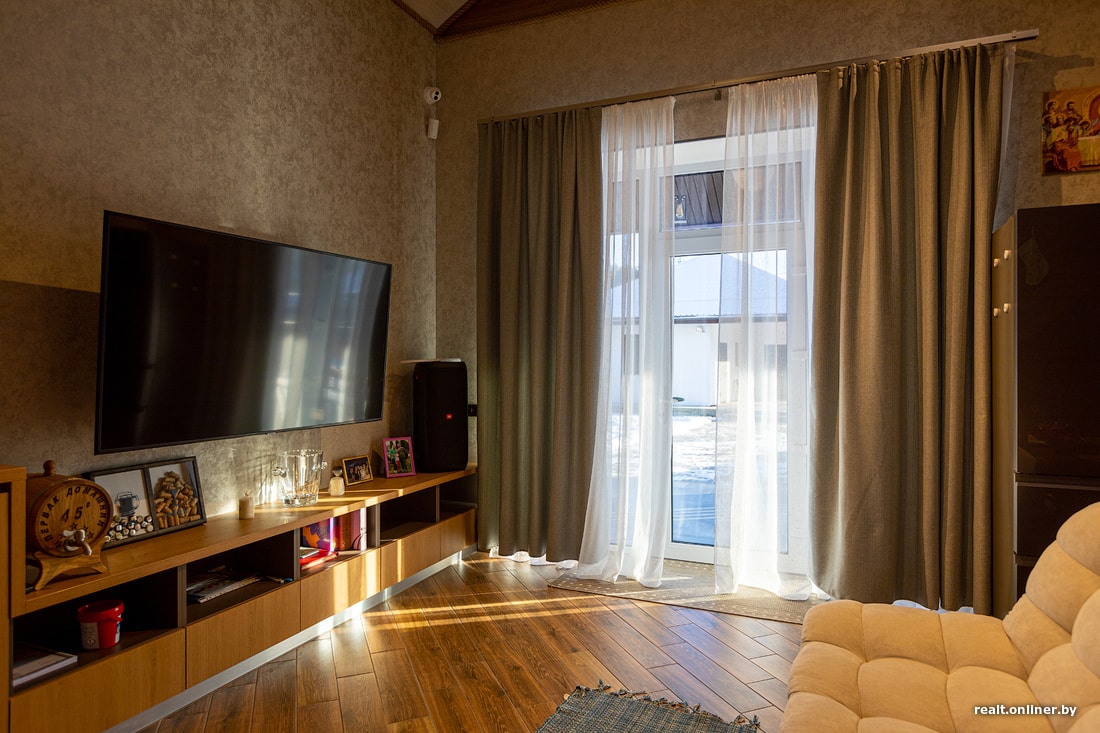 — Решили строить из кирпича, потому что цена материала оказалась сопоставима с газосиликатными блоками, а качество было куда лучше. Что касается каркасников и в целом деревянных домов, то там масса вопросов по био- и огнезащите. Дерево гниет, выцветает, требует ежегодного ухода и дополнительного внимания. Кирпич — нет, — считает хозяин дома. — К слову, местный Радошковичский керамический завод продает хороший кирпич по отличной цене. Да, кладка стоит дороже, чем в случае с газосиликатом, но, на мой взгляд, если строишь на века, то экономить на этом не стоит. Дом получился очень теплый. Мы на днях приглашали специалистов с тепловизором — результат порадовал. Немного отрегулировали окна, в остальном — все отлично.