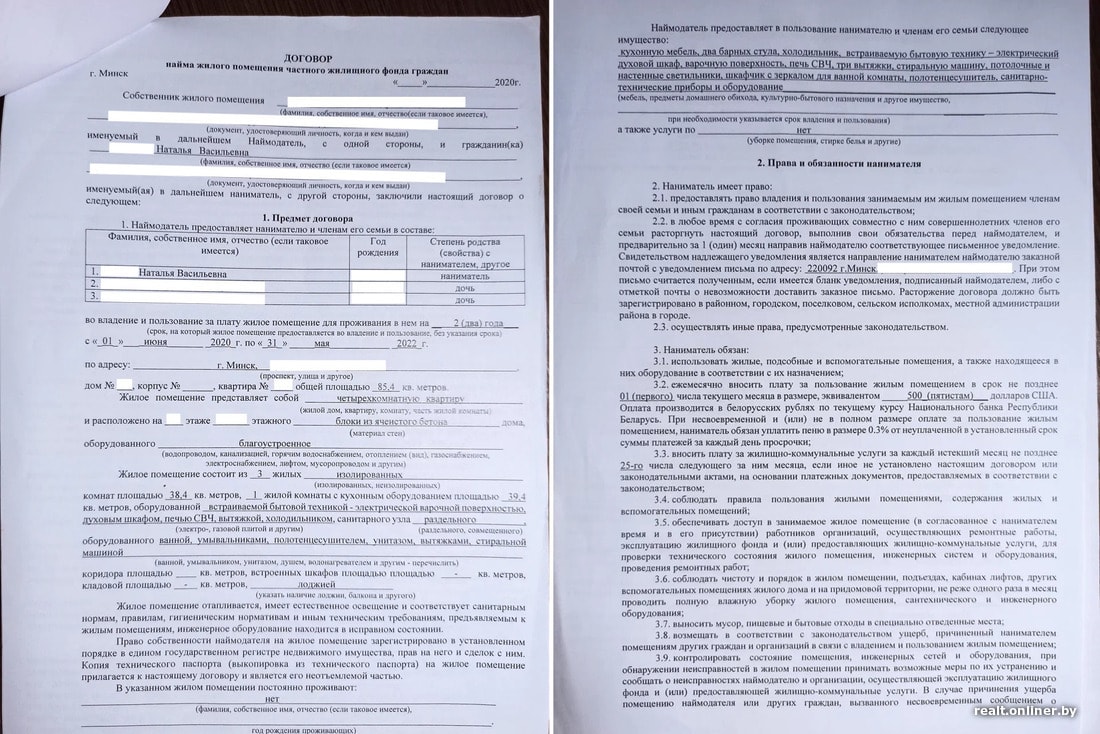 Обсудив все детали, женщины подписали договор найма на два года (до 31 мая 2022-го), а также договор залога на $500. По условиям этого документа, владельцы помещения могли не возвращать Наталье эту сумму, если та съедет раньше оговоренного срока — так собственники пытались застраховать себя от «залетных гастролеров», часто меняющих место жительства. Залог был нужен еще и на случай, если после выселения понадобится уборка, устранение каких-то неисправностей или даже ремонт.