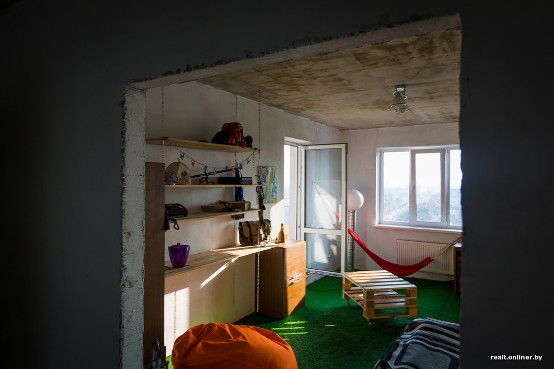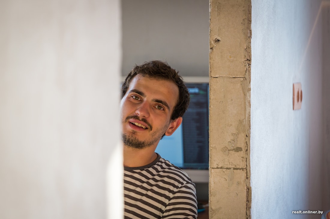 Встреча с Олегом — из цикла «Минск — большая деревня». История даже не про теорию шести рукопожатий: оказалось, еще в 2015-м мы познакомились лично. Тогда парень удивил минчан тем, что арендовал квартиру в новостройке. Казалось бы, и что? Но не спешите с выводами — двушка сдавалась с черновой отделкой, бесплатно, лишь за «коммуналку». Вложив $500 в минимальный ремонт, Олег сумел в серых холодных стенах рассмотреть чистый лист для творчества и обустроить вполне себе уютное «гнездышко» в мире бетона.