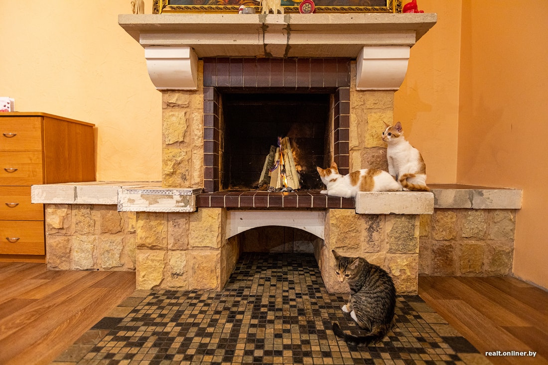 Живой очаг дает плюс 100 к уюту. Это чувствуют даже котята, которые с любопытством наблюдают, как загорается огонь (к слову, эти питомцы Натальи ищут новый дом — мы обещали написать!).