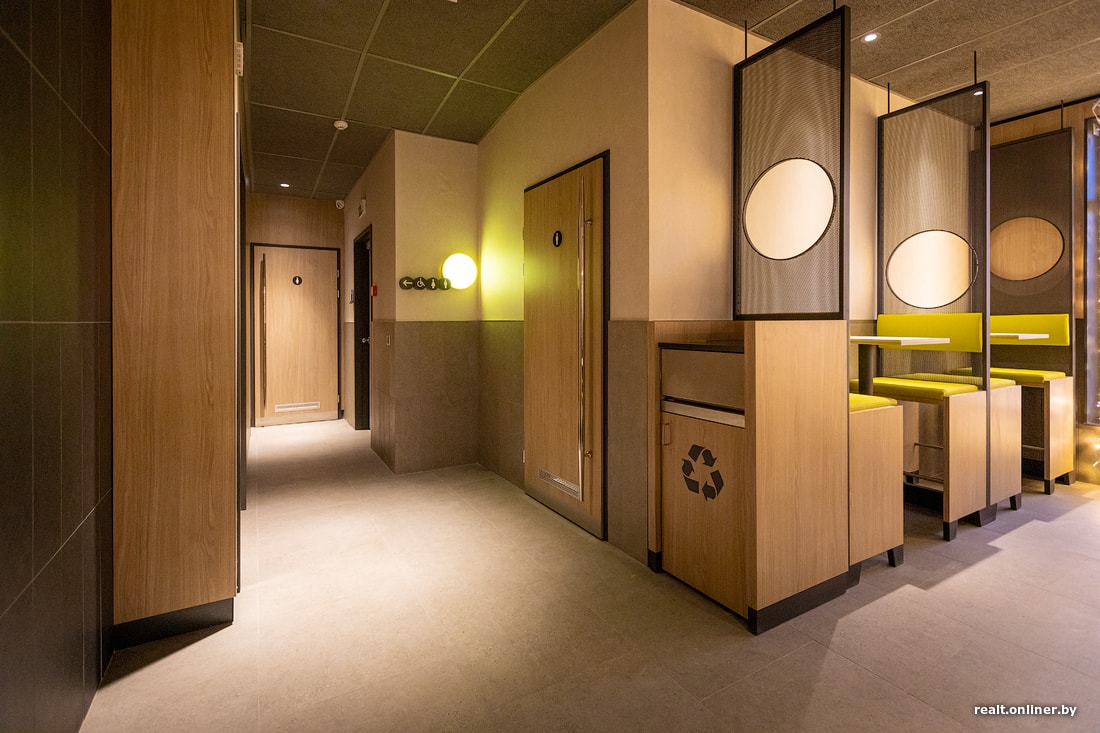 Снаружи здание — под натуральные дерево и бетон, в сочетании с графитовым цветом. Внутри впервые в Беларуси (и во второй раз в Европе) применили новый интерьер Luna от дизайн-студии Uxus.
