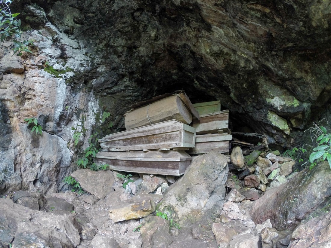 Еще одной особенностью данной местности является использование и другой версии данного обряда, когда гробы помещают на скальную стену, но не на открытом воздухе, а в пещере (в частности, в пещере Лумианг, куда тоже водят экскурсии), которая обеспечивает естественную защиту от дождей. Впрочем, формально в таком случае данное захоронение уже считается подземным.
