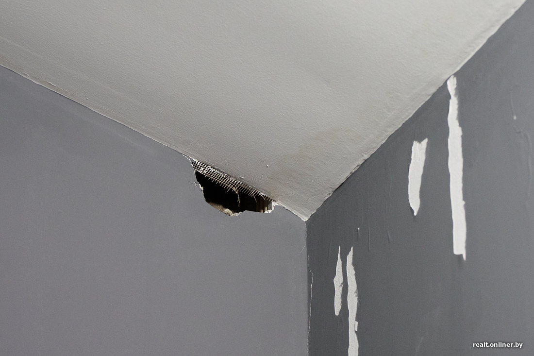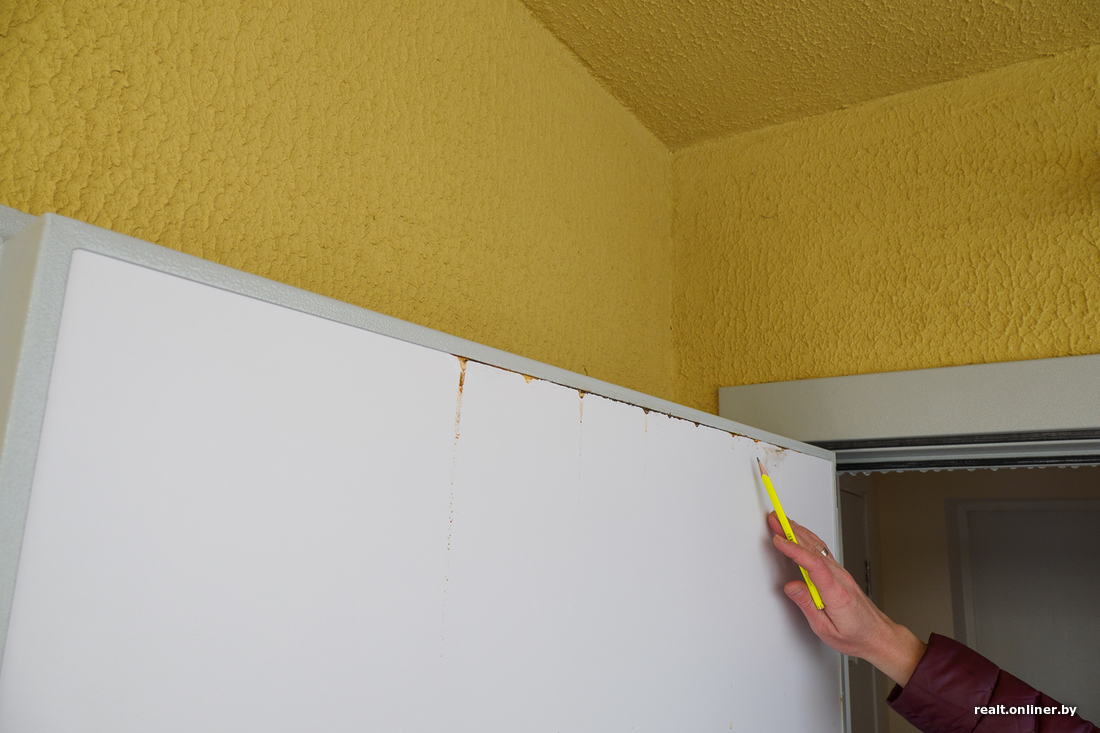 — Во время дождей, даже минимальных, течет кровля: в комнатах на втором этаже испорчены обои, облезла краска, — проводит для нас экскурсию хозяйка. — В нашей спальне вообще появились дыры в потолке… Там очень холодно — еще и потому, что крыша утеплена абы как: вместо цельных блоков минваты какой-то мусор. Мы случайно это обнаружили, когда муж поднялся наверх вместе с ребятами из подрядной организации, которые должны были устранять течь. Наверное, уже целую бочку герметика туда залили, а толку нет.