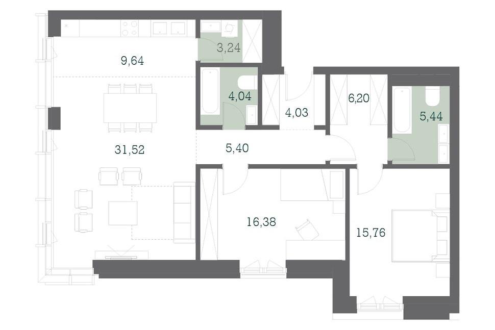 Квартиры в двух подъездах сдадут без отделки, а в третьем — с предчистовой отделкой white box. Средняя стоимость «квадрата» в доме — 3400 долларов.