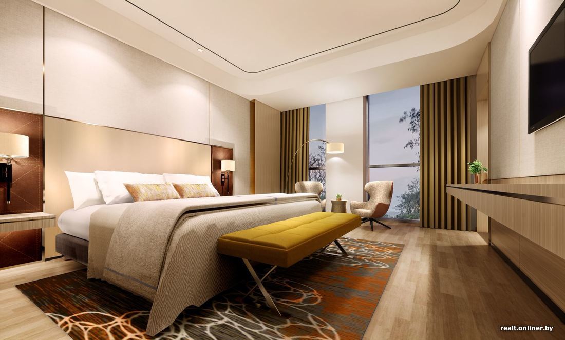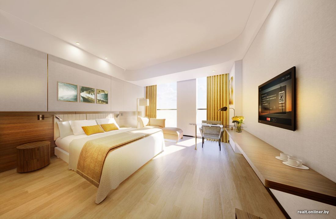 К декабрю обещают закончить и четырехзвездочную гостиницу. В ней будет 142 обычных номера и 8 люксов, а также конференц-залы и переговорные, спа-салон с бассейном, ресторан русской кухни и кинотеатр на 40 мест.