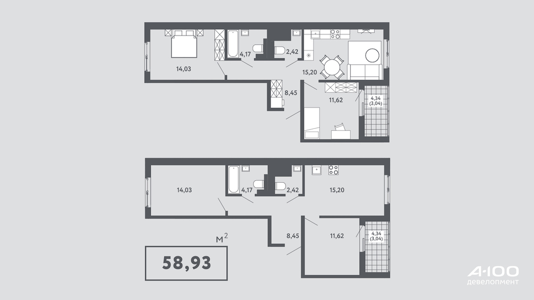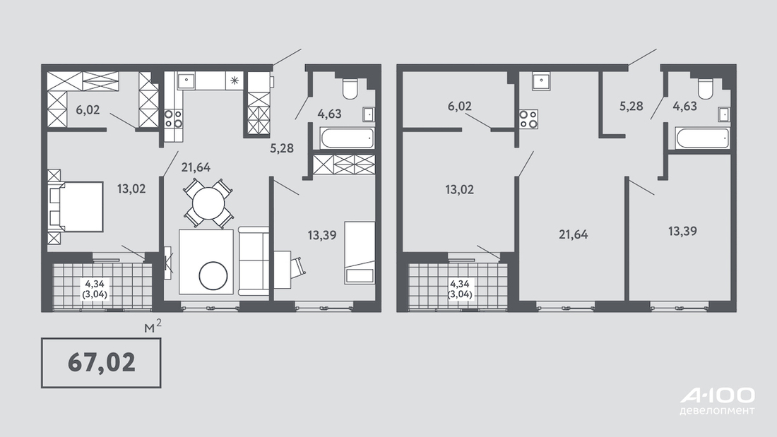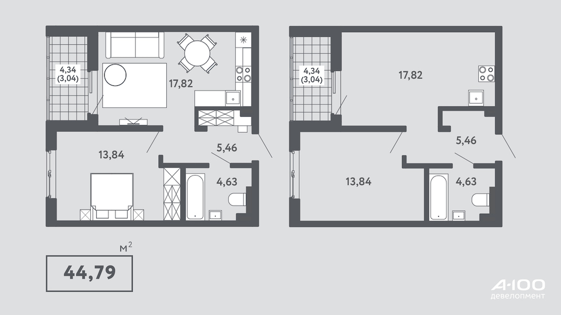 В «А-100 Девелопмент» отмечают, что решения и мебельные пакеты адаптировали под разные сценарии использования: есть варианты квартир для пар, семей с детьми, а также на одного взрослого.