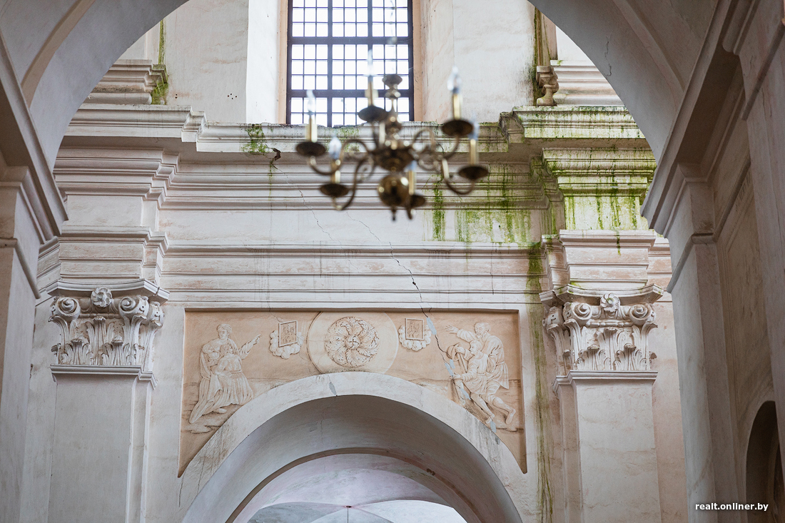 Пад касцёлам — яшчэ адзін закінуты свет. Паўнавартаснага электрычнага асвятлення ў будынку пакуль няма — павінен хадзіць з ліхтарыкам. Паўсюль стаяць падпоркі.
