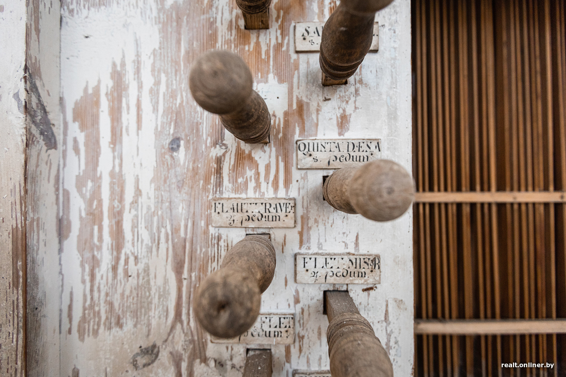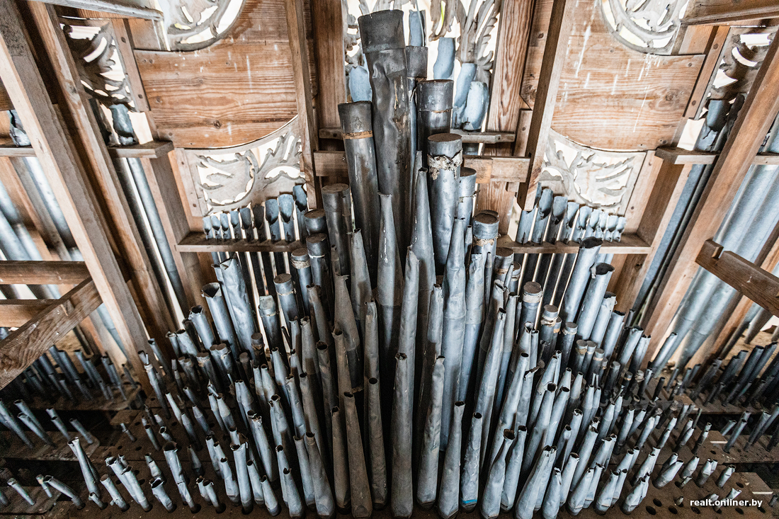 — Падчас пажару з аргана вынеслі ўсе драўляныя трубы і ўнікальны рэгістр Vox humana. Вярнулі ўсё назад, але ж трубы пакуль не ўсталёўвалі, — распавядае Дзмітрый.