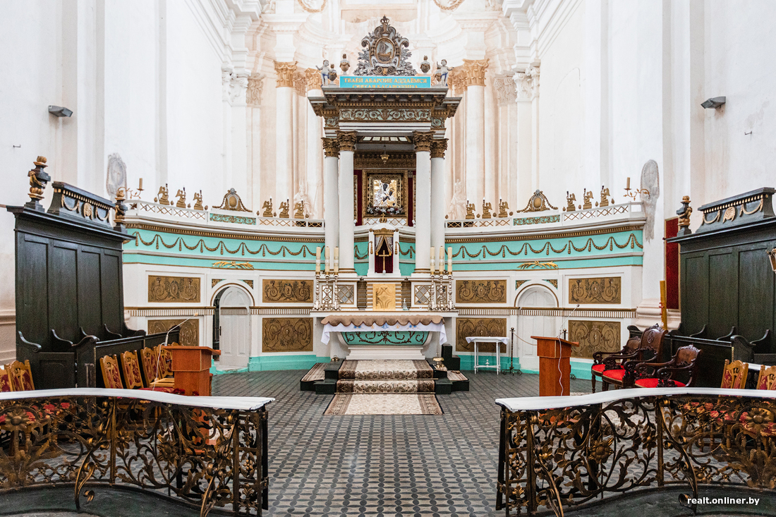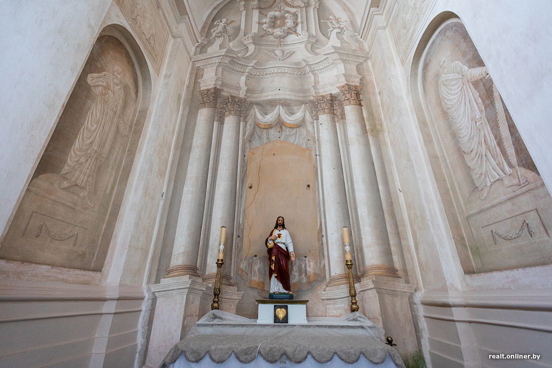 — Ён цудоўна захаваўся. Алтар незвычайны: ад уваходу ён падаецца нашмат большым, чым ёсць насамрэч. Калі-нікалі сюды прывозяць на экскурсіі будучых архітэктараў і дызайнераў, каб паказаць прыклад увасаблення перспектывы, — распавядае Дзмітрый.