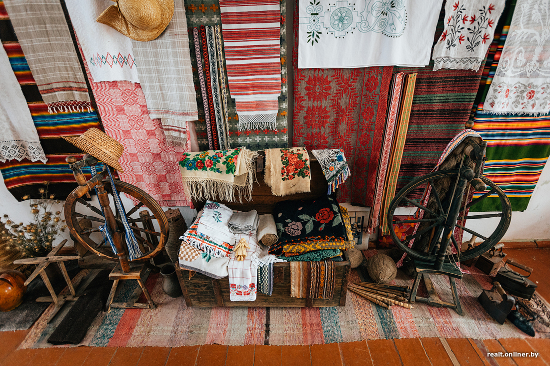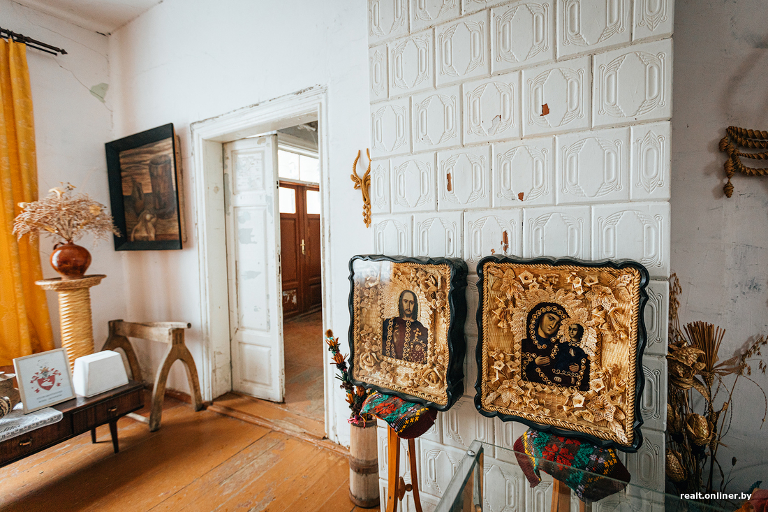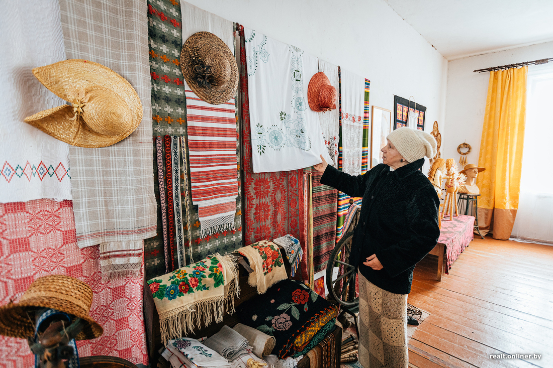 Но ехать так далеко, чтобы посмотреть на мастерство белоруски, необязательно — достаточно заглянуть в ее усадьбу. Вместе с мужем Вера Евгеньевна организовала в одной из комнат небольшой музей. Кроме изделий из соломки здесь вывешены иконы и картины Александра Васильевича, а еще аккуратно разложены предметы белорусского быта. Из них в свое время можно было собрать отличное приданое для невесты.