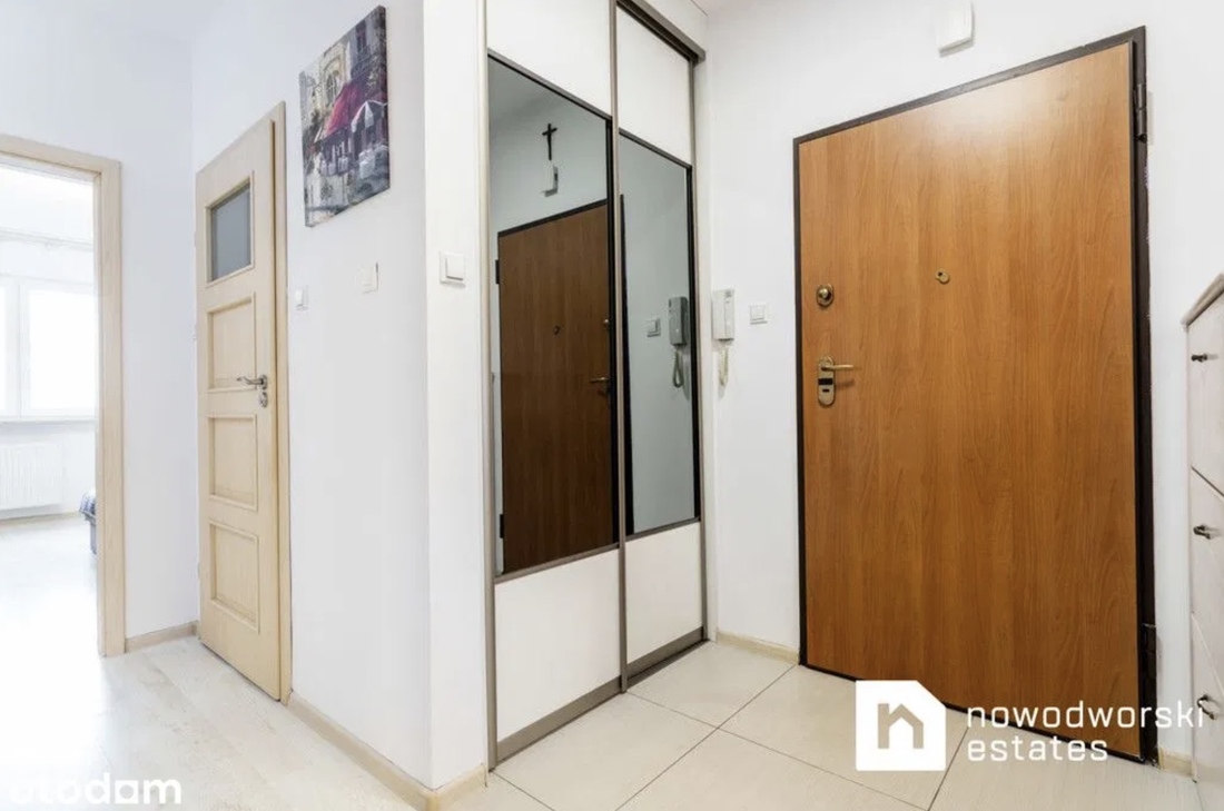 За 2700 злотых (€570) предлагают арендовать двушку размером 43 кв. м. Состоит из кухни-гостиной, спальни и ванной комнаты. Полностью меблирована и готова к заселению. Скрывается квартира в современном жилом комплексе недалеко от аэропорта. В стоимость включено парковочное место.