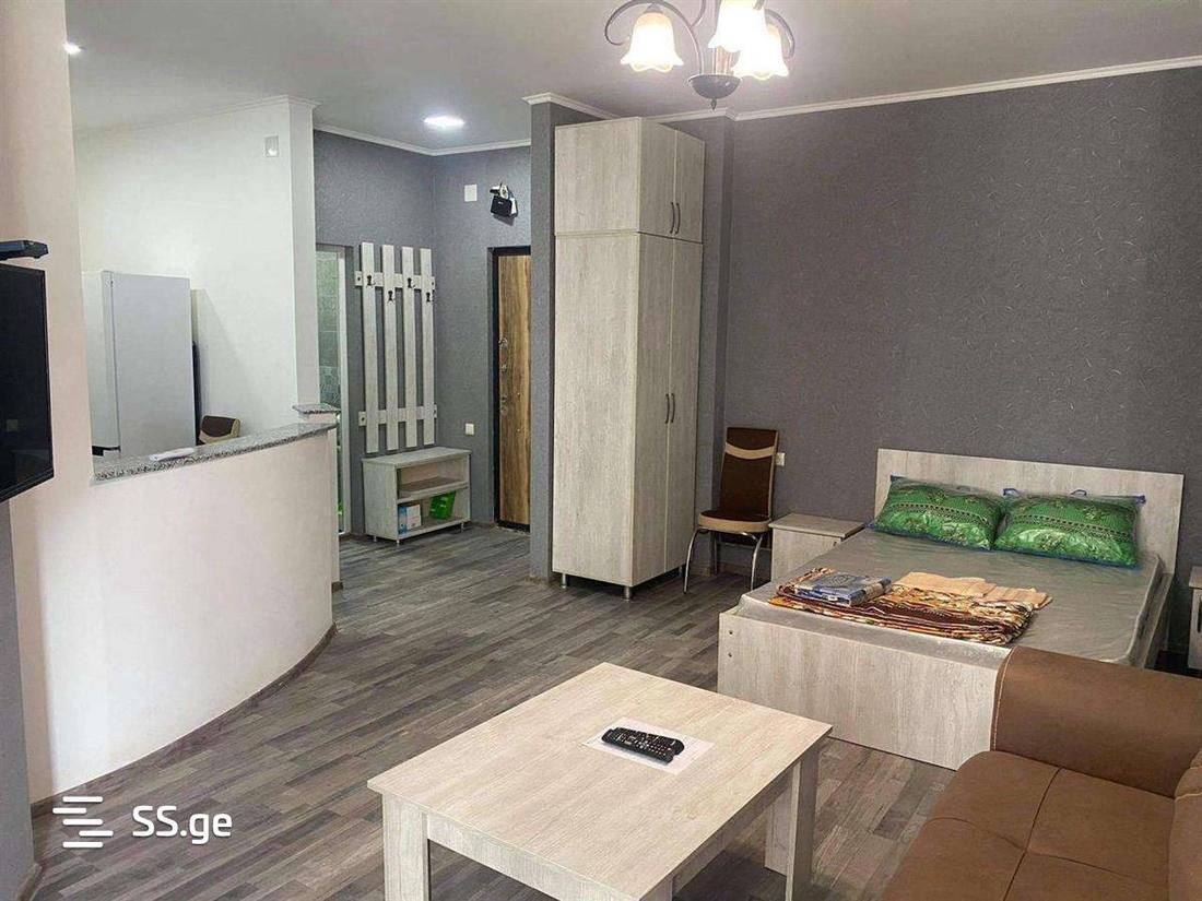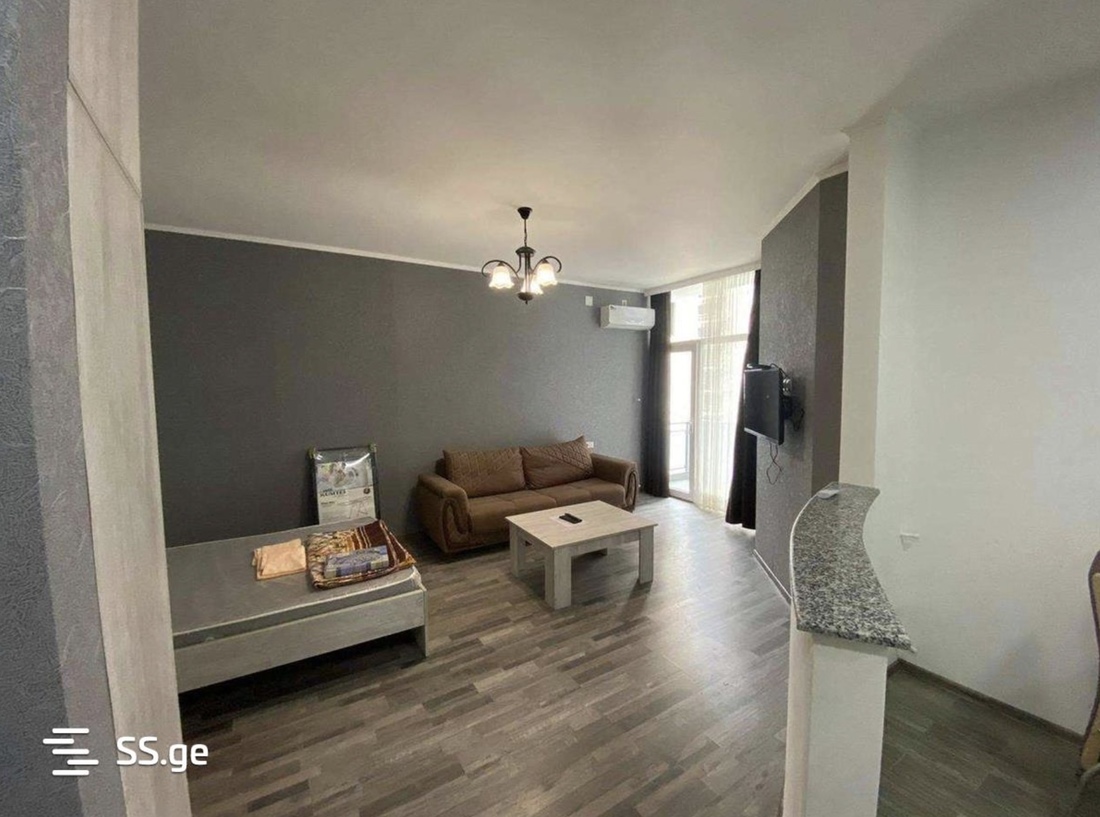 Мы решили сами посмотреть, какое жилье есть на специализированных сайтах. Некоторые варианты можно снять за довольно неплохую цену. Вот такую студию в Батуми предлагают за $300. Площадь — 38 кв. м. Кухня здесь огорожена и обставлена необходимой техникой. В гостиной есть отдельная кровать и диван, телевизор, шкаф. Отопление — от кондиционера. Находится в современном ЖК.