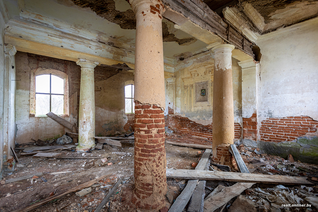 Эти стены, поддерживающие небесный свод над деревней Заушье уже более двух веков, помнят многое. Если бы вдруг арки, колонны и лепнина заговорили, нам пришлось бы исписать немало страниц (а то и томов). Часовня, построенная Моравскими как одна из важнейших частей их богатого и знаменитого имения, была «поверенной» во всех делах семьи: здесь страстно молились о благополучии и мире, крестили долгожданных детей и провожали в последний путь ушедших родственников. А потом все сломалось — в черной бездне войн увязли планы и надежды, само имение оказалось стерто с лица земли, а нам, далеким потомкам, остались только осколки былой роскоши и могущества. Onlíner продолжает изучать малоизвестные белорусские усадьбы — те, в которые вы можете съездить на любых выходных, открыв для себя новую страницу истории. В прошлый раз мы побывали в усадьбе Обуховичей в Великой Липе, которую до сих пор охраняют доблестные рыцари. Сегодня изучим еще одну забытую жемчужину Несвижского района.