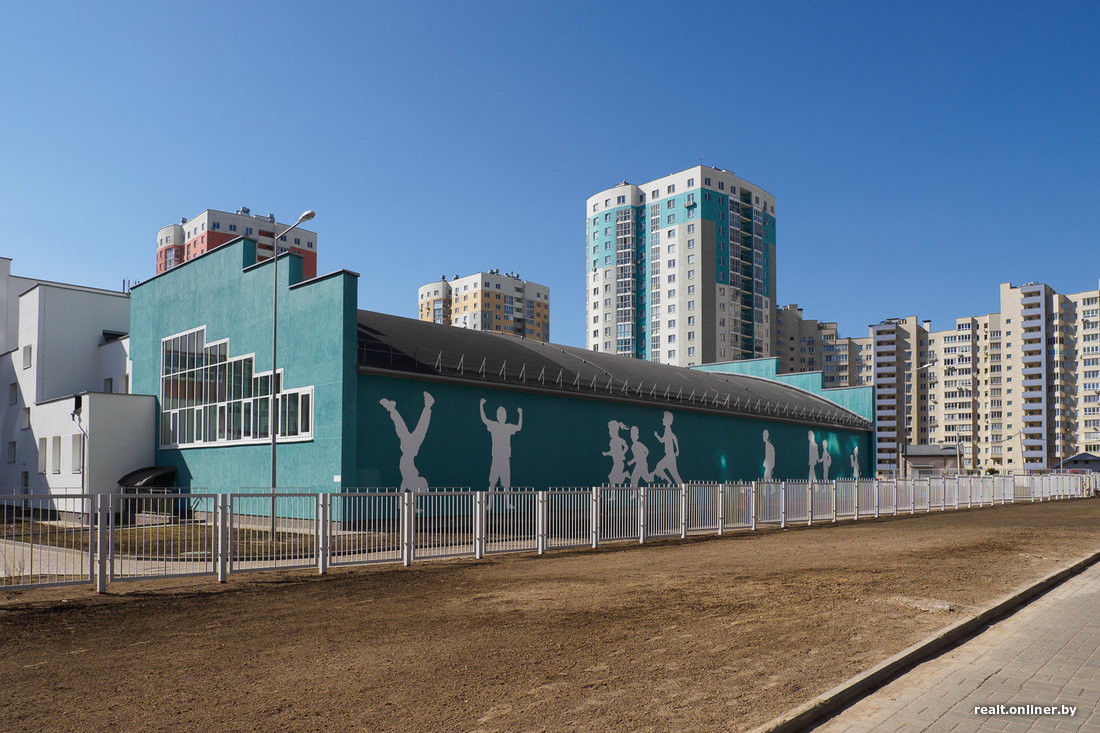 Эта новая школа в Брилевичах открылась еще в январе. Сюда переехала гимназия №41, а недавно временно переселились ученики из знаменитой школы №4, пока их здание в центре ремонтируют. Примечательная деталь, которую можно оценить снаружи, — количество спортплощадок.