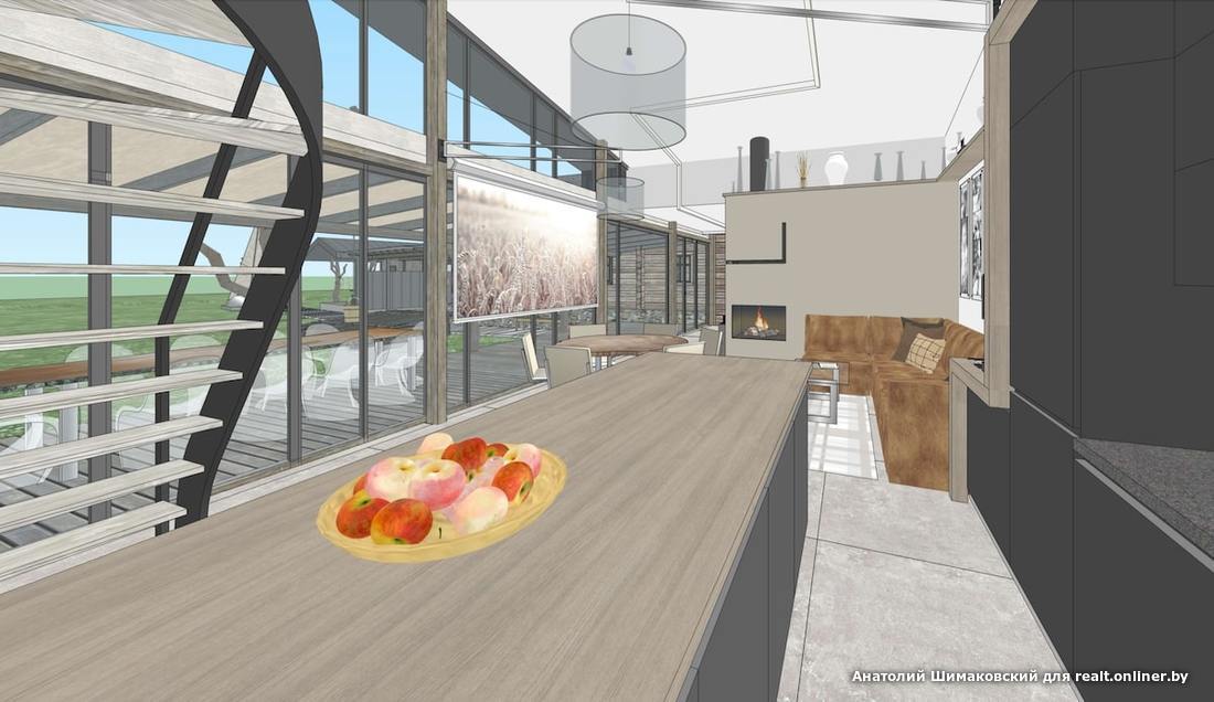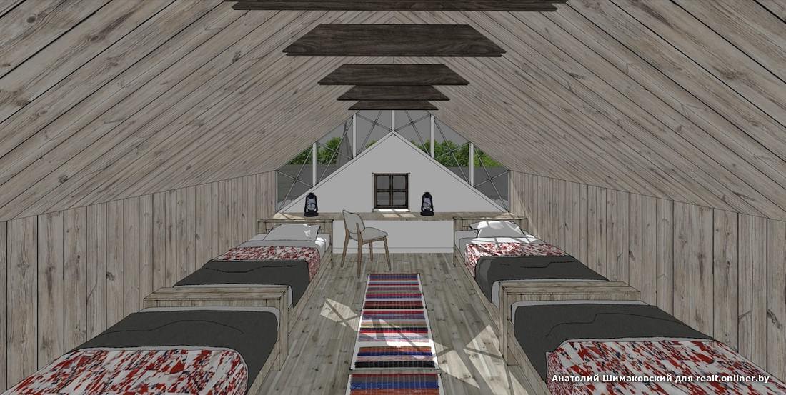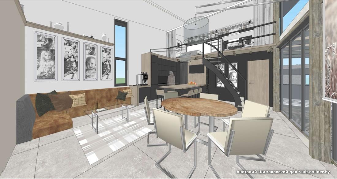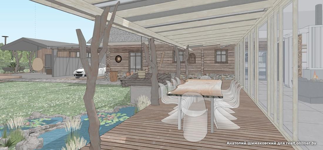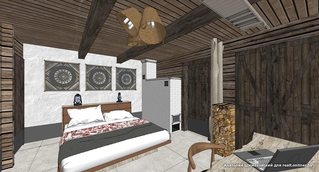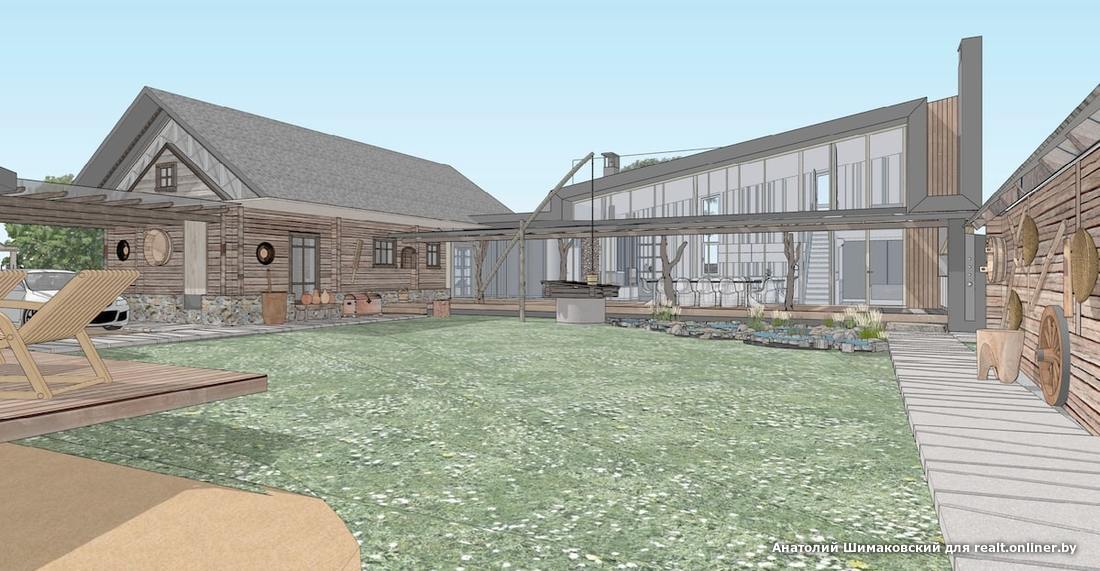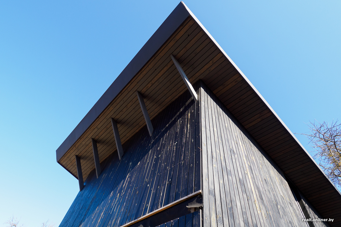 — Деревянные срубы очень красиво седеют. Сначала цвет свежего дерева превращается в серый, потом — в темно-серый. Решили таким его и оставить, — рассказывает Александр. — Вообще серые тона натуральны для архитектуры белорусской деревни. Все это очень органично вписывается в окружающую среду.