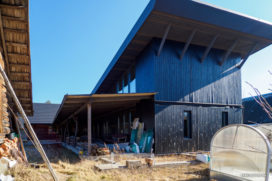 Прямо сейчас в сотне километров от Минска, почти на берегу Нарочанки, продается необычная усадьба. Пять лет назад минчанин купил за 3000 долларов по курсу старую деревенскую хату. Говорит: «Хотелось, чтобы у детей тоже был дом, куда можно приезжать на лето». Спустя время на участке вырос современный черный каркасник с панорамным остеклением. Но главная фишка в другом: новый дом пристроен к той самой исторической хате. Onlíner побывал на месте и расспросил хозяина и архитектора о необычном проекте.