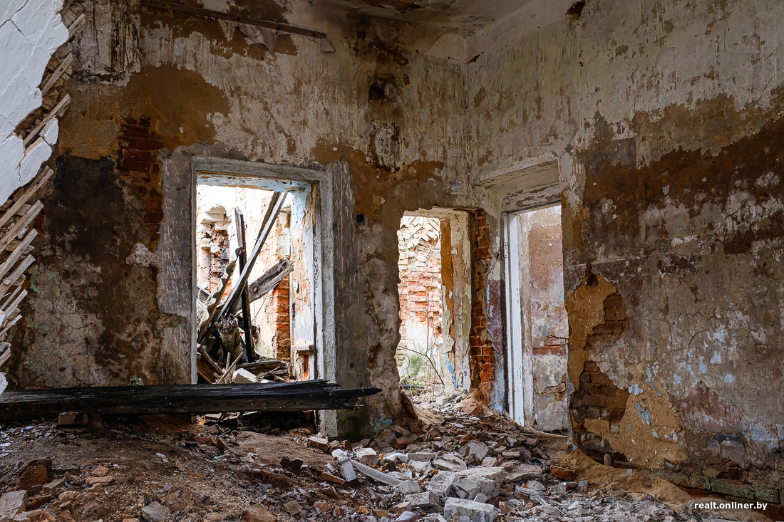 Однако Вторая мировая война, как и абсолютно все войны на планете, принесла боль и разрушения. Красивейшая усадьба, которую историк Анатолий Федорук, автор книги «Старинные усадьбы Минского края», считает одним из лучших памятников дворцово-парковой архитектуры, сгорела и была частично разрушена.