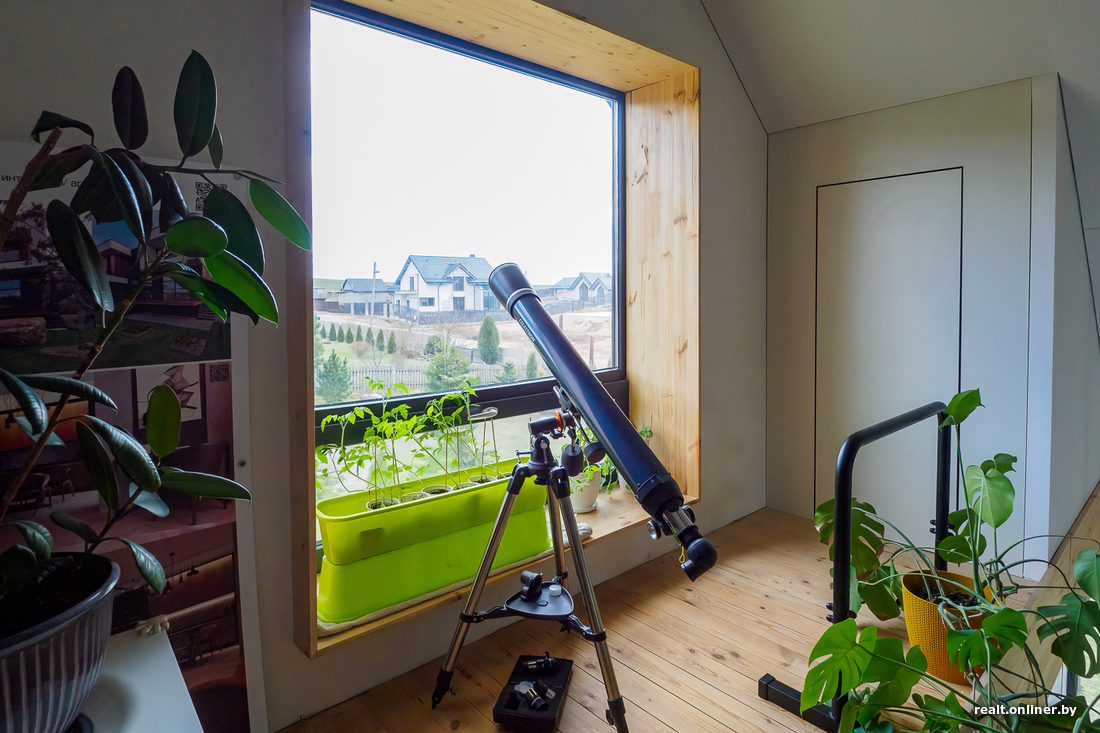 Что касается отопления, то сейчас мы обогреваемся электричеством. Это очень выгодно. Своя розетка для подзарядки электромобиля тоже есть. В случае если вдруг электричество в деревне пропадет, спасет отличный камин. Также все подготовлено к подключению твердотопливного котла (его еще нет, но помещение на цокольном этаже оборудовано по всем правилам). Внедрена технология умного дома, — объясняет хозяин.