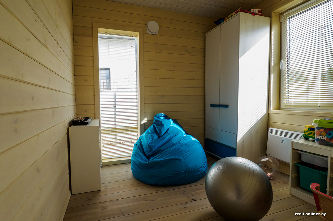 Гостиная, объединенная с кухней, детская, спальня, кабинет, санузел (отдельная гордость хозяев), сауна, постирочная, зона хранения — такова начинка дома. Но тут лучше смотреть на фото, чтобы понимать, что есть что.