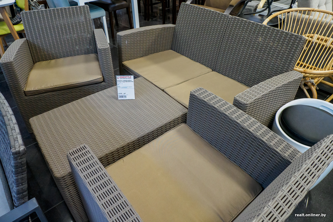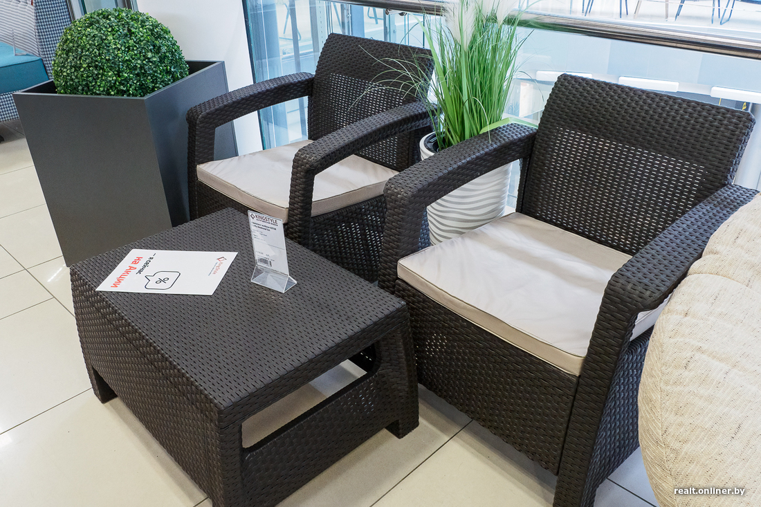 Тут можно обзавестись и садовой мебелью. Комплект стоит 1110 рублей. По словам Кристины, в других белорусских магазинах попросят значительно больше. Хотя у скандинавов было бы значительно дешевле.