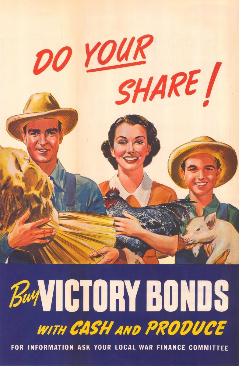 Канадские успехи по мобилизации собственной экономики были бы невозможны без военных облигаций. Как и во многих других странах мира, эти долговые бумаги, выпускаемые правительством, помогали тому финансировать армейские расходы и бороться с инфляцией, но была в них и еще одна, идеологическая польза. Покупая Victory Bonds (такое название облигации носили в Канаде), любой ее гражданин в каждом уголке огромной территории мог почувствовать себя причастным к борьбе за справедливость, даже если он формально не был задействован в оборонных проектах.