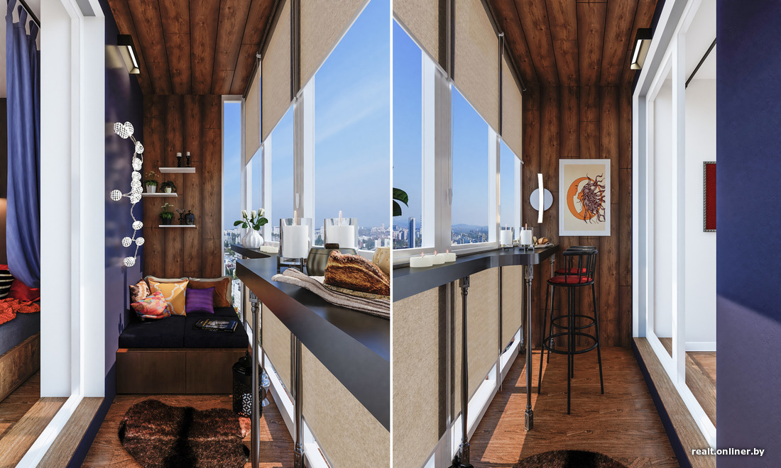 — Один из моих любимых уголков — это лоджия. Здесь удалось создать зону отдыха с барной стойкой и небольшим диванчиком. Получилось уютное и волшебное место, откуда просто невозможно уйти. Правда, лоджию я не утепляла, так что комфортно там только в теплое время года, — замечает минчанка.