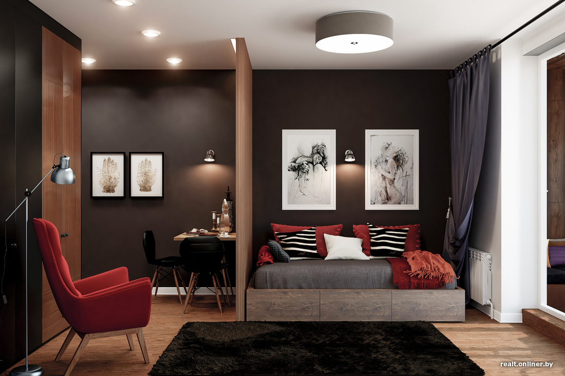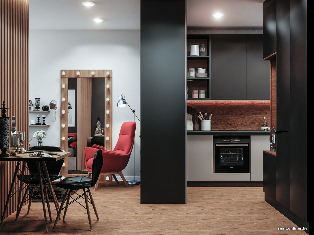 Любовь стала обладательницей компактной однушки в «Минск-Мире» в 2018 году. Но ремонт закончила только в прошлом. Самым сложным было уместить в студии площадью 32 «квадрата» все, о чем она мечтала. Хотелось и гостиную для посиделок с подружками иметь, и спальное место. А еще — рабочее пространство, обеденную зону, систему хранения. В общем, без грамотной планировки обойтись было нельзя. Для этих целей девушка наняла профессионального дизайнера. И не прогадала. А если вы тоже сделали в своей квартире классный ремонт и хотите всем его показать, присылайте фотографии на почту daa@onliner.by.