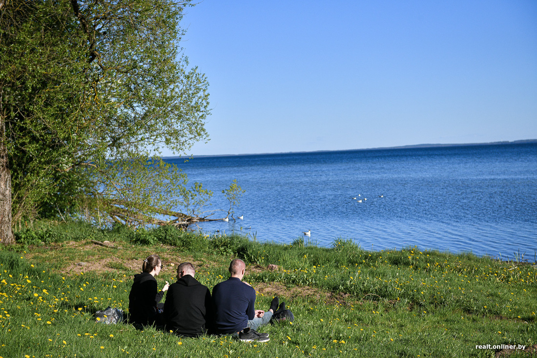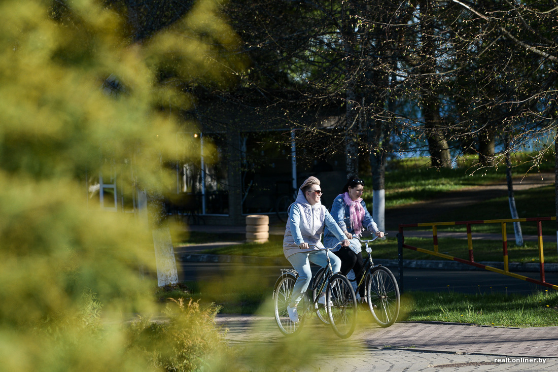 Впрочем, есть и те, кто уже крутит педали по дорожкам у воды, да и просто чилит на солнце на берегу. Вокруг она самая — сдержанная белорусская красота.