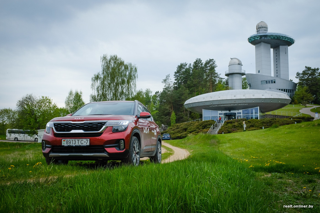 Его становится видно задолго до того, как гость физически оказывается у подножия этого необычного комплекса. В какой-то момент над деревенскими домами и лесами или, возможно, одним из бесчисленных местных озер вы обязательно заметите футуристический стеклянный диск со странной надстройкой. Сначала он кажется вызывающе чужеродным, посторонним пришельцем, агрессивно вторгшимся в веками заведенный порядок меланхоличной литовской природы. Но на самом деле при всей своей эффектной оболочке здание это посвящено самым вечным, изначальным вещам, которыми одинаково отчаянно интересовались наши предки и будут интересоваться наши потомки. Рассказом об одном из самых особенных мест Литвы, куда мы попали на новом кроссовере Kia Seltos, продолжаем совместную с официальным дистрибьютором Kia в Беларуси ООО «Автопалас-М» серию материалов о поездках выходного дня.