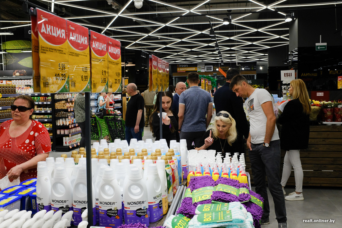 Сегодня на улице Кабушкина наконец-то открылся ТРЦ Green Time. Этого события местные жители ждали давно и постоянно обрывали телефонные провода с единственным вопросом: «Ну когда уже?» Вот и сегодня кто-то пришел даже чуть раньше положенных 12:00 и, скучая под лучами солнца, пытался рассмотреть что-то сквозь стекло. Когда двери все-таки распахнулись, посетители зашли внутрь в поисках того единственного — продуктового гипермаркета Green, который заработал в торговом центре одним из первых (остальные арендаторы подтянутся к концу месяца). Легендарных войн за подсолнечное масло не случилось, но народу было действительно много. Как это было — в фотографиях Onlíner.