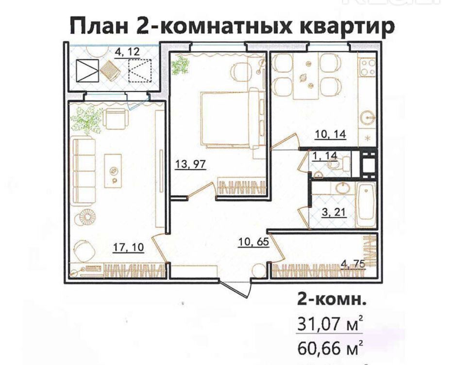 29 двушек (общая площадь от 63,84 до 66,75 «квадрата»). Цена за метр — до $950.