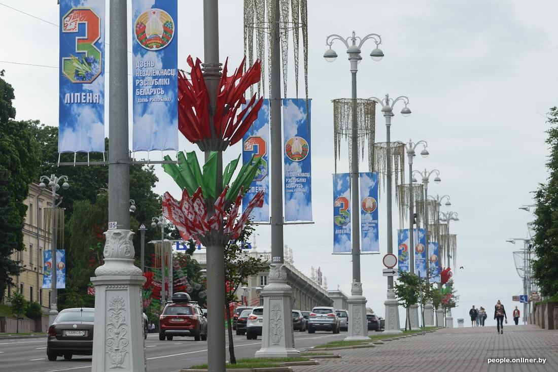В Минске установили праздничное оформление ко Дню независимости Республики Беларусь, сообщает агентство «Минск-Новости». «В этом году в основу тематического оформления города легли три символа: герб, флаг и национальный орнамент. Колористику выбрали сдержанную, официальную, торжественную – и в то же время яркую и жизнеутверждающую», — отметили в отделе дизайна «Минскрекламы».