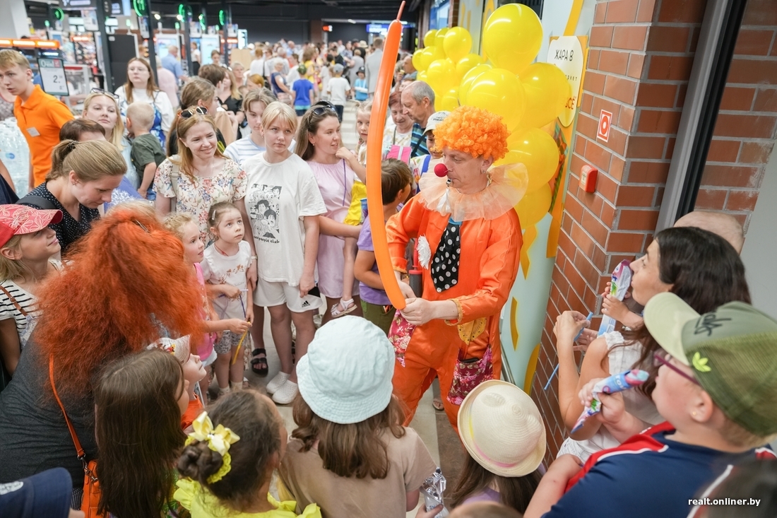 Магазин по адресу Одинцова, 65 распахнул свои двери в 15 часов. Клоуны, аниматоры, скидки и конкурсы — по традиции открытие превратилось в праздник районного масштаба. Обошлось без жутких очередей, но все же довольно «плотно»: даже в жару минчане решили не отказывать себе в удовольствии от шопинга.