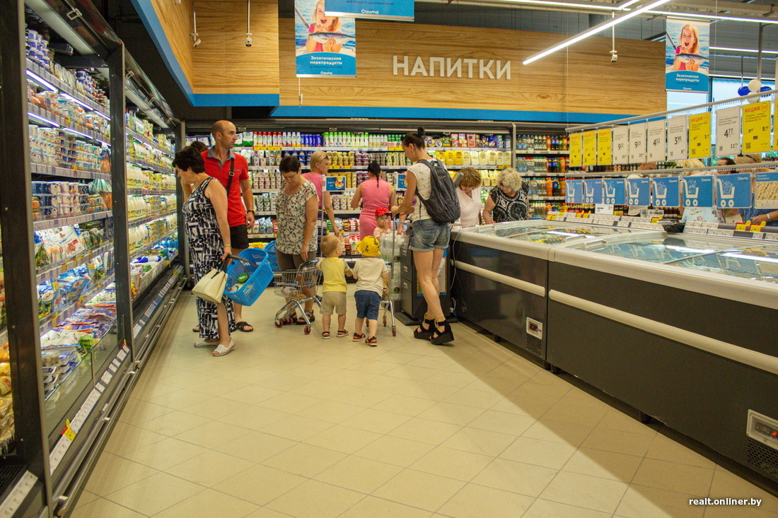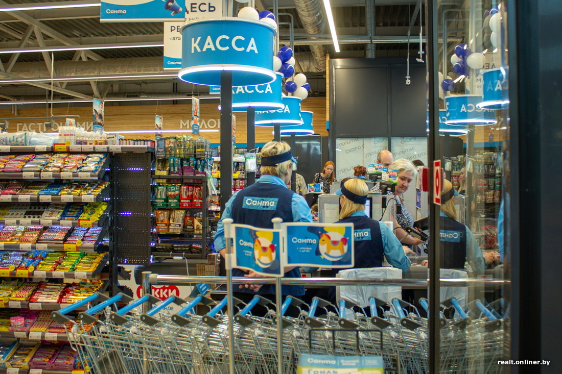 Получившееся пространство освоил магазин «Санта». Торговый зал обустроен по-европейски: широкие проходы, натуральный декор и дружелюбные цвета.