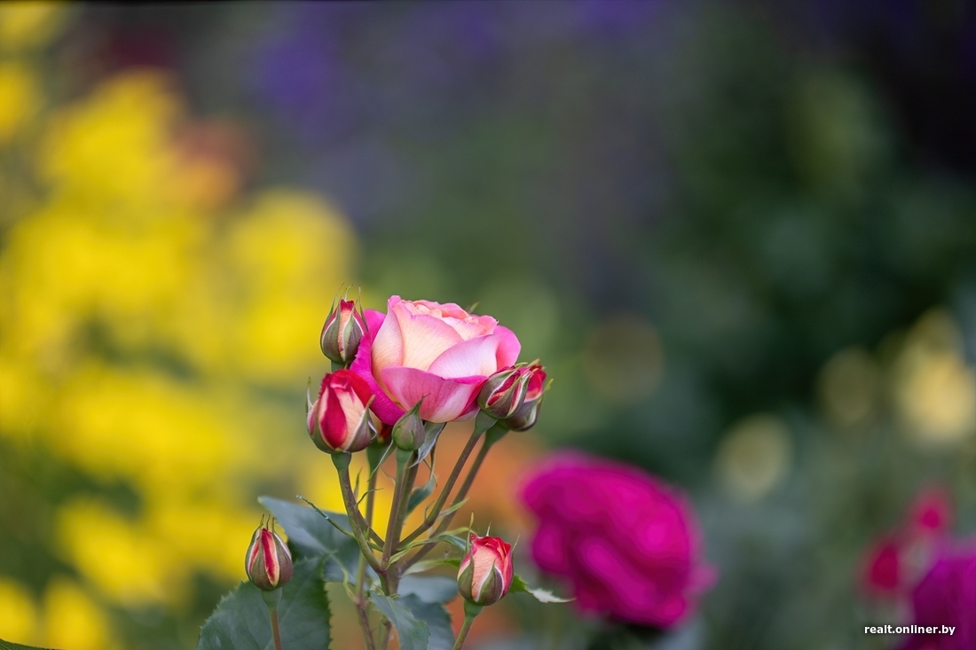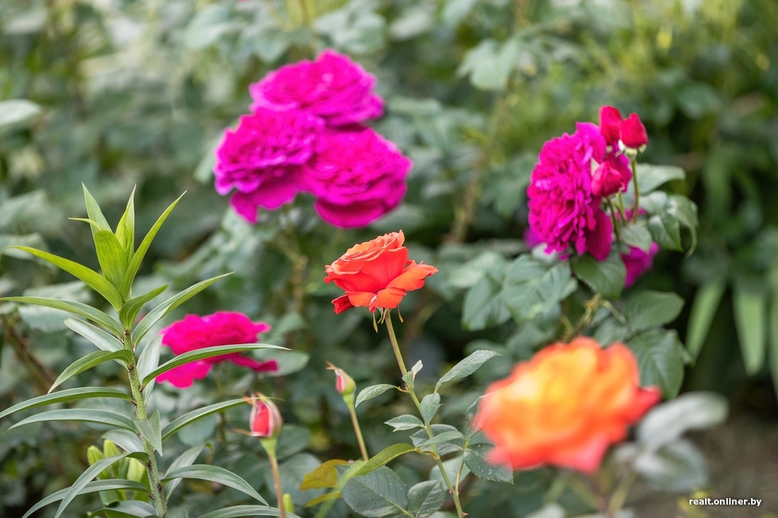 В марте распускаются крокусы, примулы и сциллы. Позже — тюльпаны, а за ними, уже летом, — лаванда и лилейники. Все они, впрочем, играют второстепенную роль. Главная отведена розам: в локальном ботаническом саду белоруски, по ее словам, около сотни кустовых.