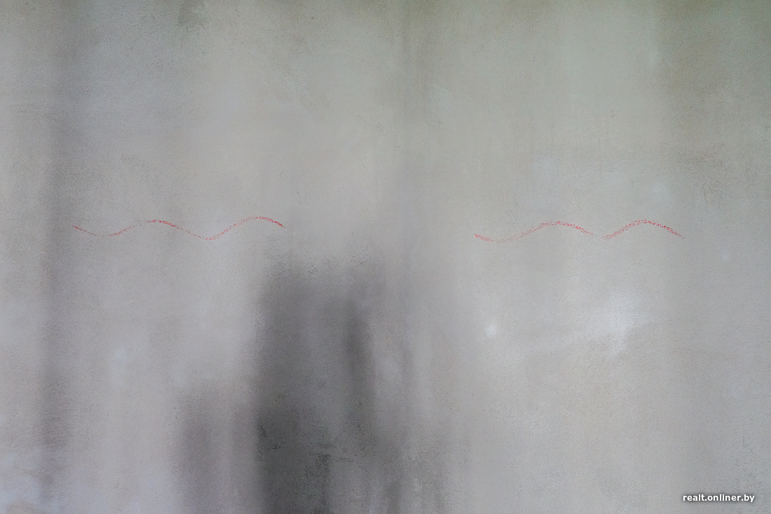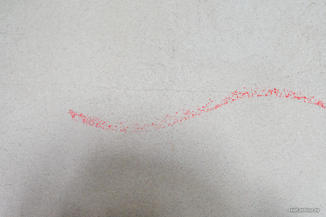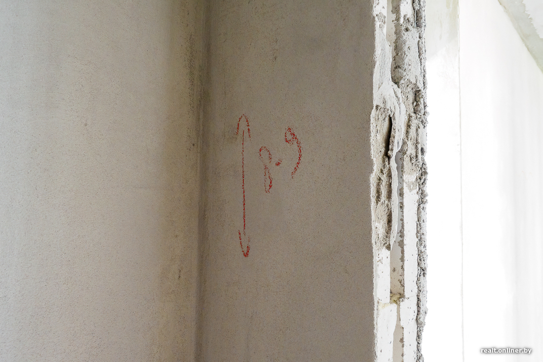 А что же наше «новообразование» — стена, которой не должно было быть, но которая делит большую квартиру на две поменьше? Здесь такая же ситуация: демпферная лента куда-то пропала, на ее месте видим штукатурку. Запишем все в акт: пусть переделают, чтобы к моменту основной приемки было красиво.