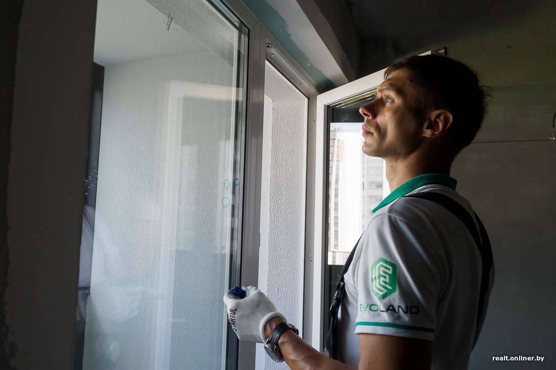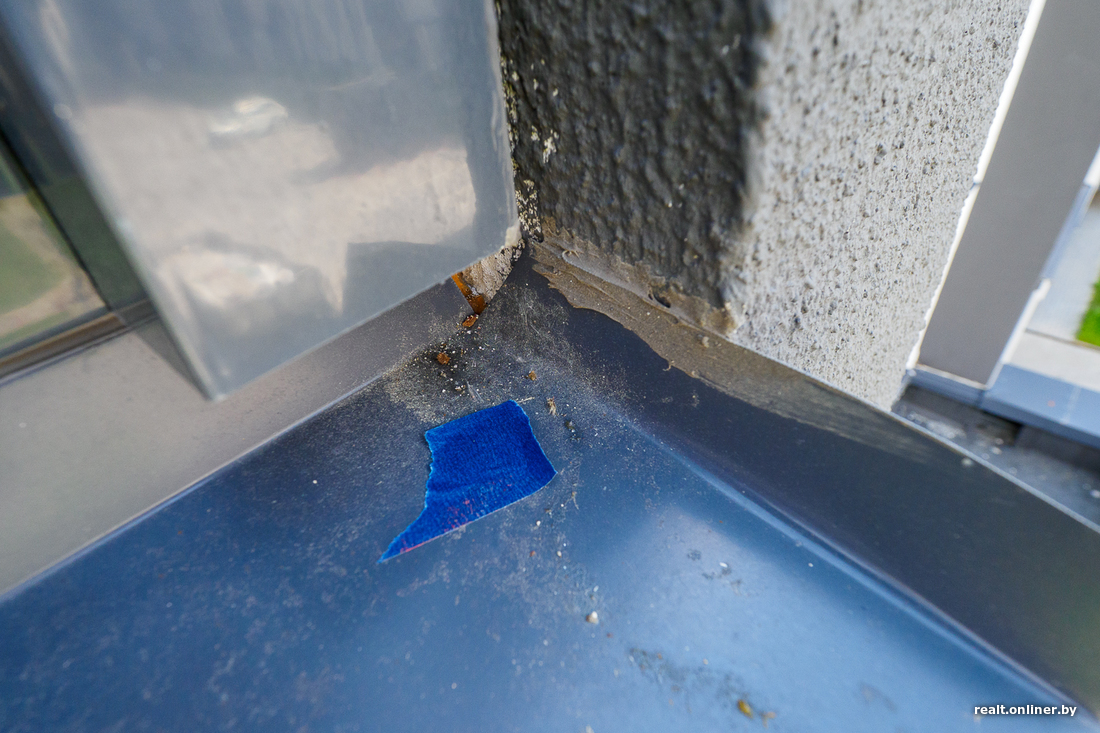 — Откосы ровные, развернуты правильно. С подоконниками тоже нет особых проблем. А вот что касается окон, то идеального результата не получилось. Балконная группа частично уходит под замену — на стеклопакетах есть заводские дефекты, а также царапины. Правда, со всеми остальными стеклопакетами порядок. Только несколько поврежденных ручек надо поменять. Ну и регулировка створкам нужна, специалисты застройщика сделают это без проблем. На самом балконе надо расправить резинки и засиликонить один из углов, чтобы не затекала вода. А еще найти заглушки и капельники.