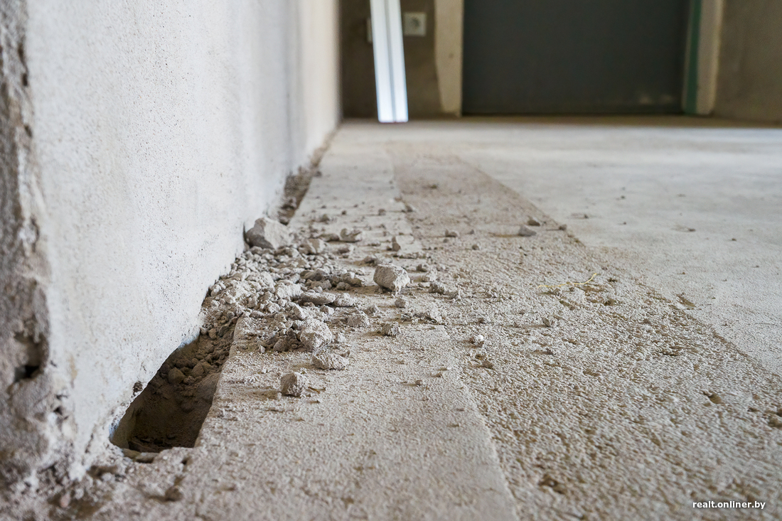 Не секрет, что даже в одном доме качество отделки может быть совершенно разным. Ведь главный «ингредиент» во всем процессе — бригада строителей, которая занималась конкретной квартирой. Тут уж кому как повезет. Смотрим, что придется записать в акт нашим героям. Пойдем снизу вверх.