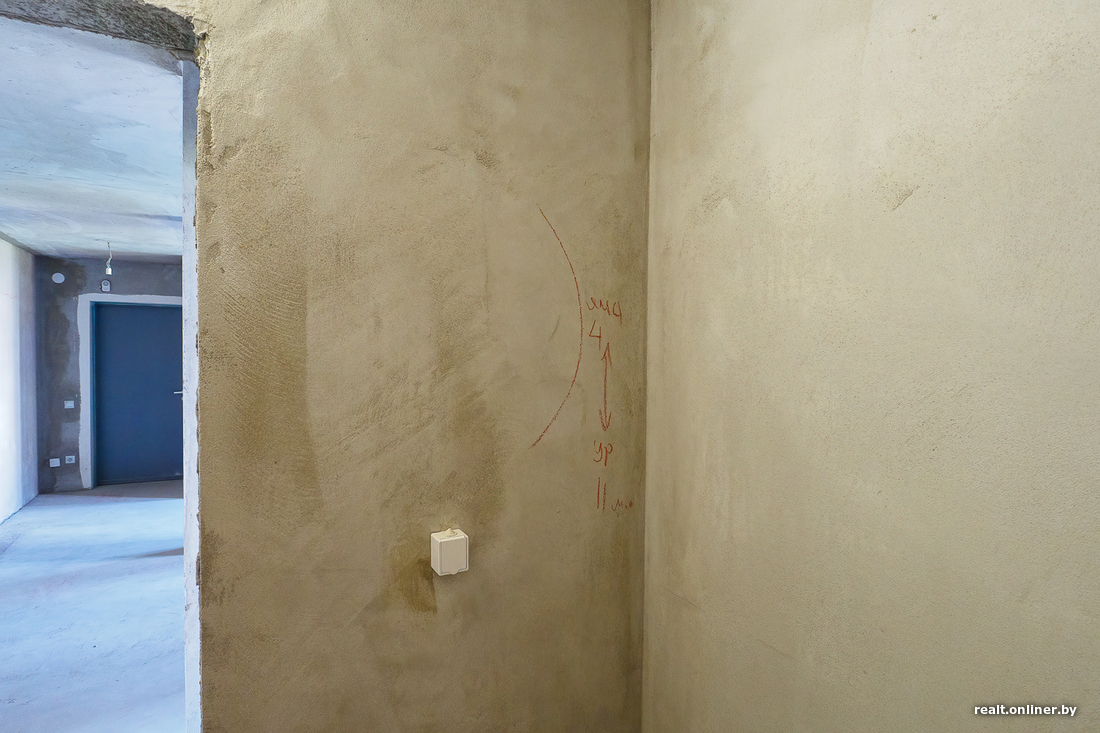 — К стяжке есть несколько вопросов, но в целом она неплохая, — проводит экскурсию по уже обследованным метрам Александр Скок из компании «Эво Лэнд». — Перепад по горизонту (имеется в виду вся площадь квартиры) — около пяти миллиметров, что вполне вписывается в допуски. Небольшие бугорки — на миллиметр или два — есть возле радиаторов, а также в дверных проемах. Но это мелочи: их вы легко зашлифуете во время ремонта. В целом стяжка готова к укладке любого напольного покрытия.