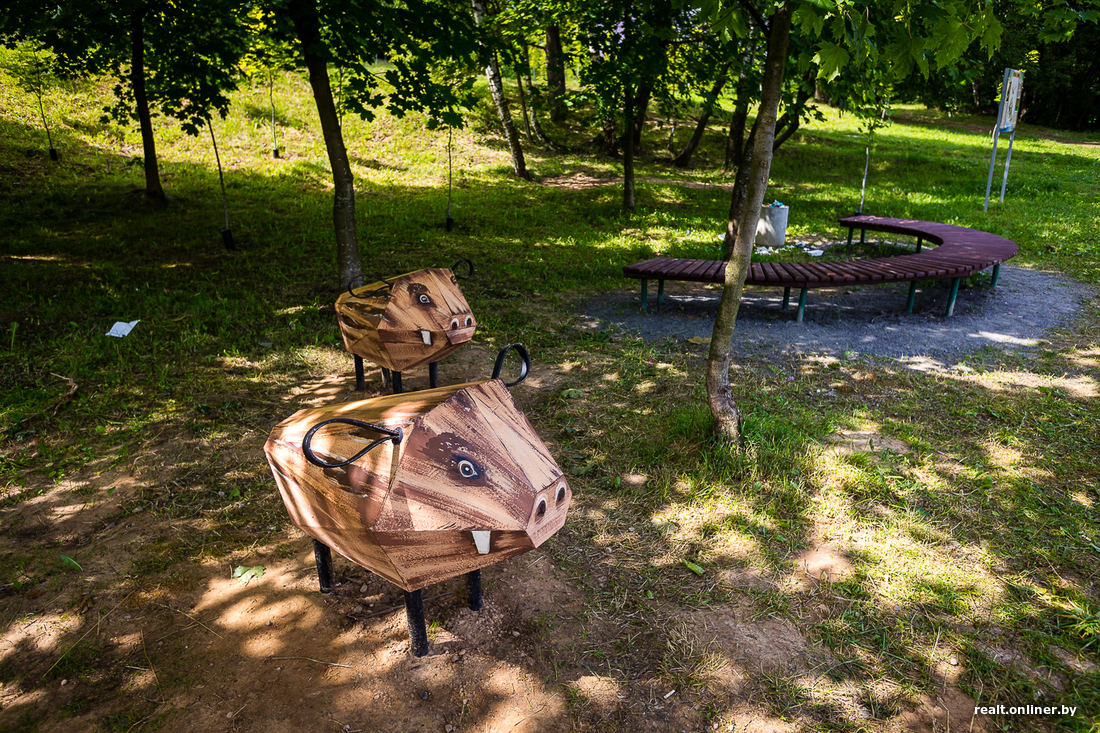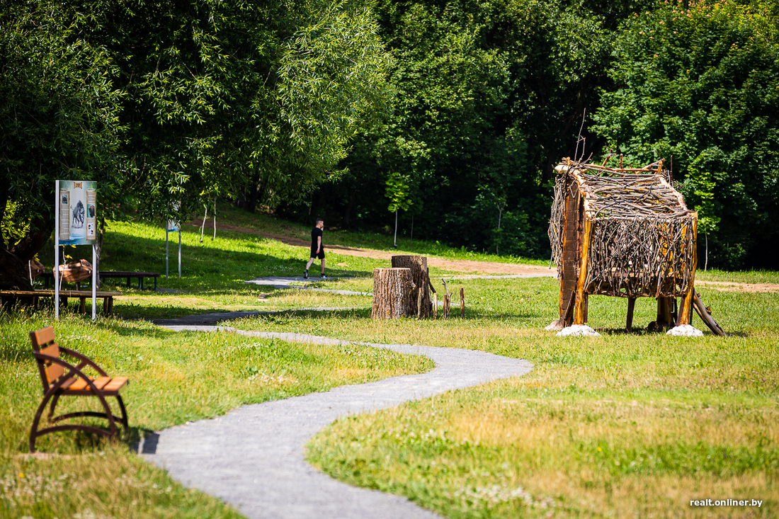 «Площадка наполнена различными элементами, разрабатывались несколько вариантов, нетиповых малых архитектурных форм, оригинальных, необычных, выполненных из природных материалов, из дерева в частности. Большинство объектов единичны в своем исполнении», — рассказала Кухорева в интервью агентству «Минск-Новости».