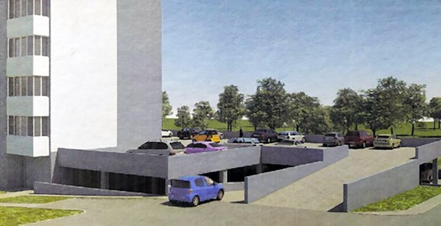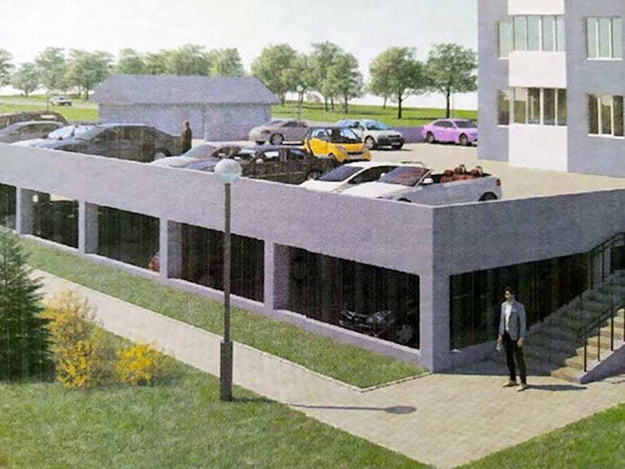 Необычным будет и паркинг. Он комбинированного типа, буквой Г «обнимает» дом. Первый этаж на 20 машино-мест полууглублен, второй — наземный на 22 машино-места — слегка приподнят, к нему ведет пандус. Это позволит сэкономить площадь.