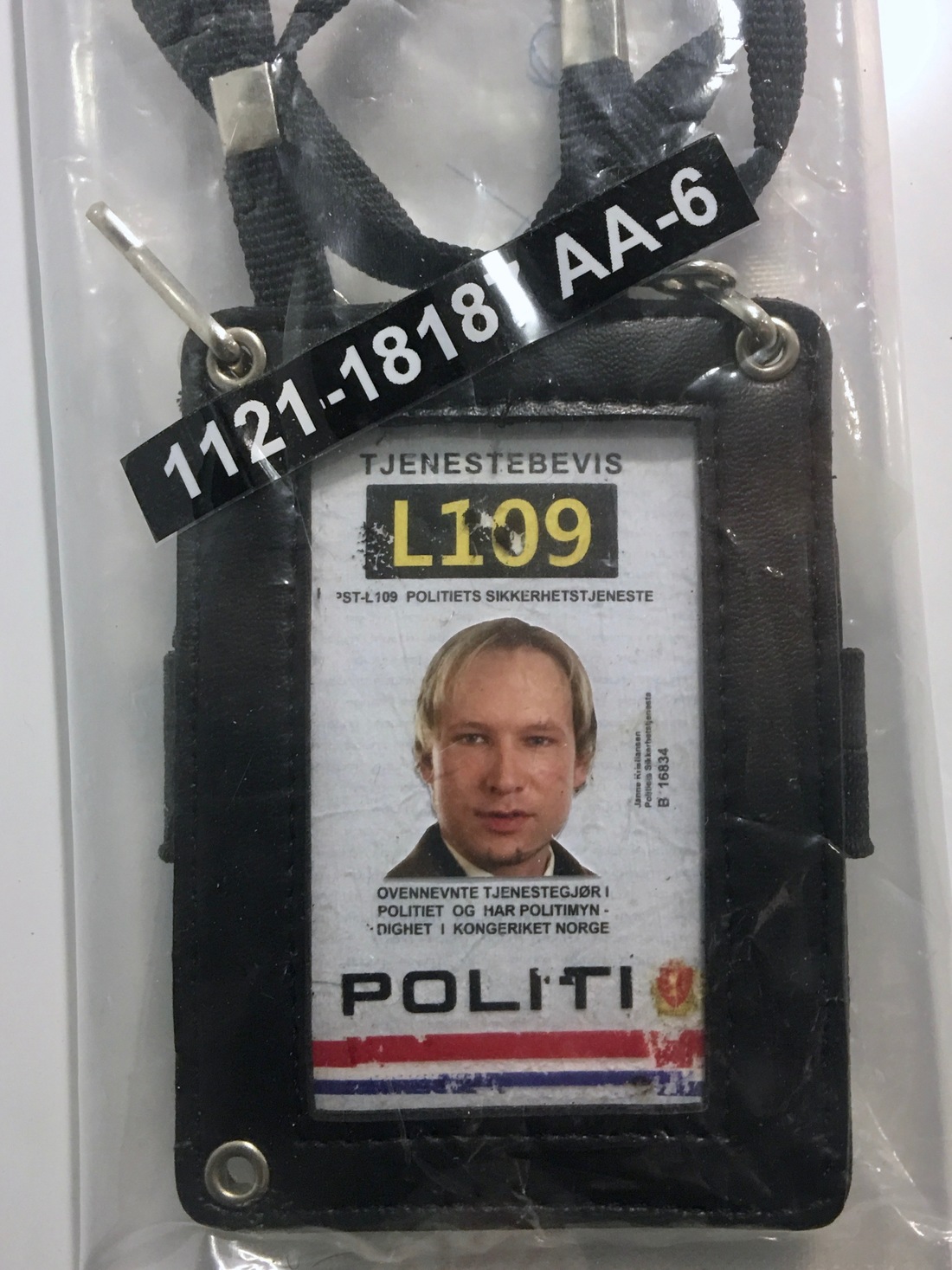 Ближе к 17:00 Fiat Doblò подъехал к парому. Из него вышел человек, одетый во все черное с надписями POLITI («Полиция»). Форма отличалась от настоящей. На человеке был бронежилет, но на это поначалу не обратили внимания. В руках у «полицейского» была тяжелая сумка. Мужчина предъявил капитану MS Thorbjrn удостоверение, где был все тот же логотип норвежской полиции и личный номер L109. Он заявил, что на фоне произошедшего в Осло теракта его отправили на Утёйю для обеспечения безопасности участников лагеря.