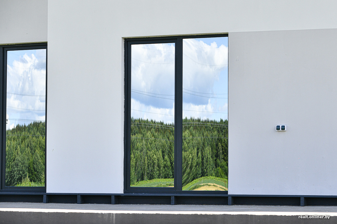 Окна тонированные: мы просто не могли испортить открывающиеся виды шторами и в то же время хотели соблюсти приватность.