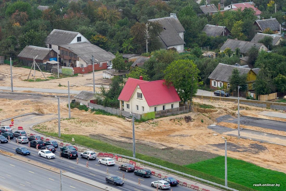 Помните примечательный дом с красной крышей внутри новой развязки на Аэродромной? Хозяева коттеджа и «Гордорстрой» (эта организация строит развязку) судились. Предприятие требовало выселения жильцов, а они были не согласны с оценкой, рассказывал Onlíner полтора года назад. Похоже, дело близится к финалу: дом начали разбирать.