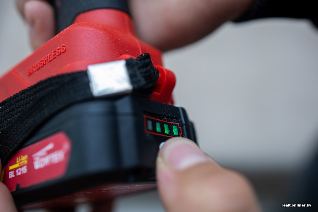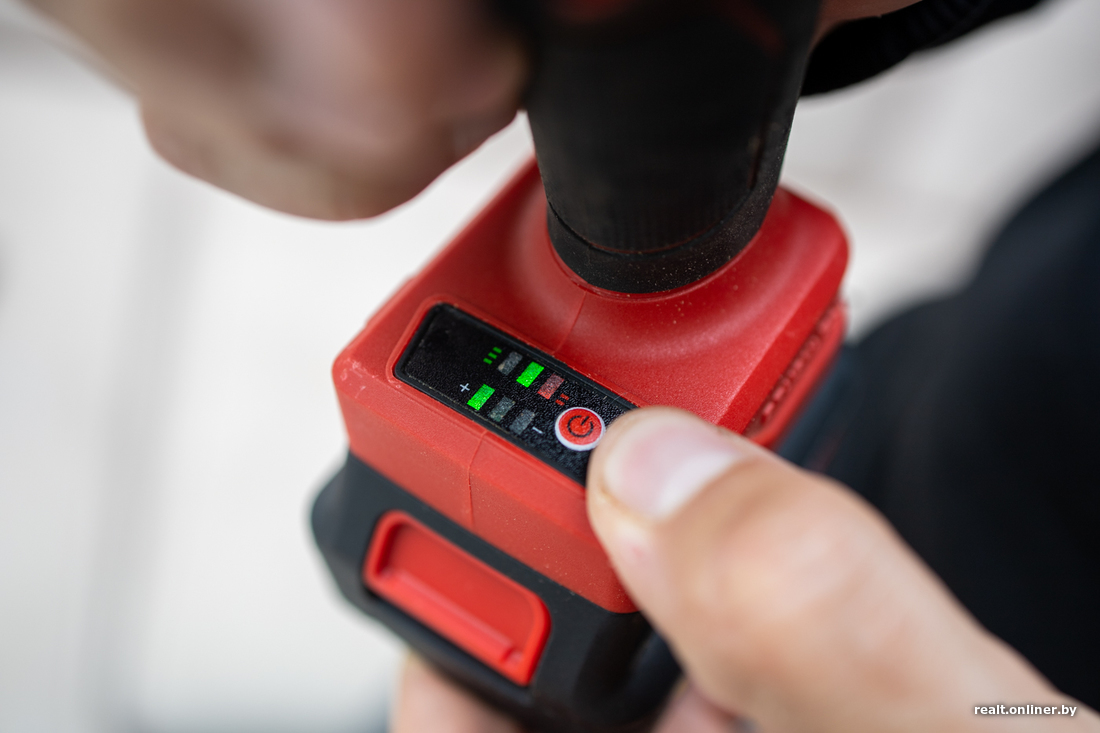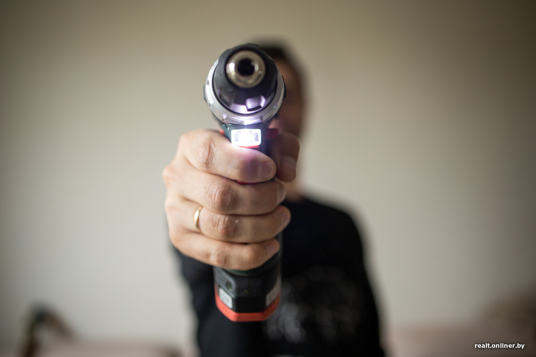 Но при всех преимуществах шуруповерт имеет и пару недостатков. Во-первых, на нем нет индикатора заряда, и это неприятно удивило. Ну а во-вторых, мощный инструмент ожидаемо оказался довольно тяжелым, и рука быстро уставала. Не проблема, если вы, например, монтируете доску пола или просто крутите вниз. Но на весу или в потолок тяжесть инструмента ощущается.