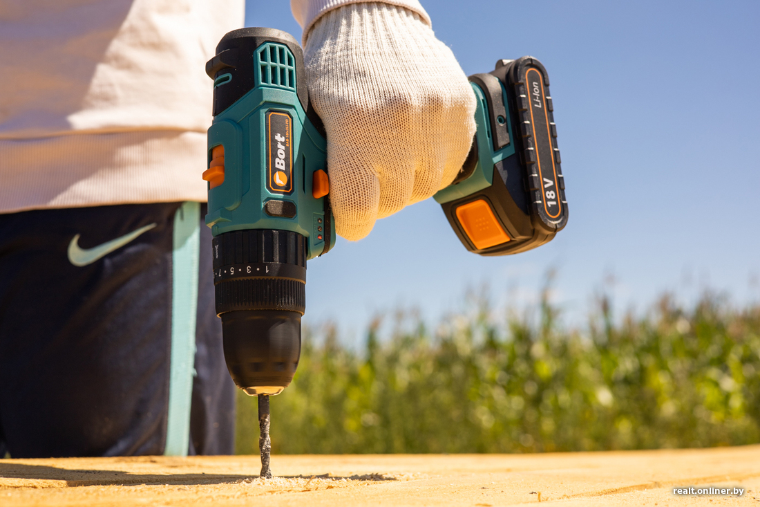 Использовали мы шуруповерт все там же: на сборке щитов опалубки из доски. Какие впечатления? Субъективно — лучший! Несмотря на довольно низкий заявленный крутящий момент (30 Н·м), для наших задач его хватило с лихвой. Заряжается быстро, разряжается долго... На режиме сверления с ударом опробовать не довелось, но в отзывах пишут, что картину вешать очень удобно. А значит, можно сэкономить на дрели или перфораторе.