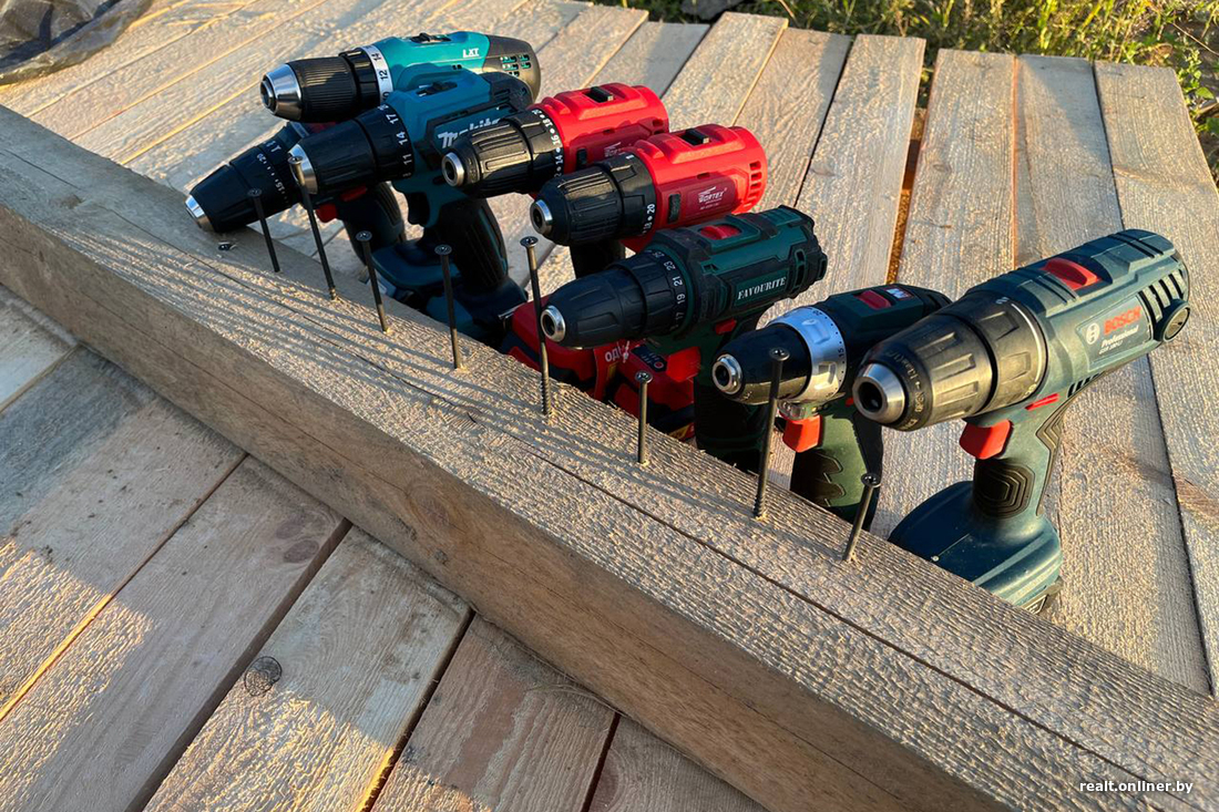 Для теста взяли длинные саморезы — 120 миллиметров — и пытались их вкрутить в десятисантиметровый брус одной и той же битой на первой скорости с максимальным крутящим моментом. Вряд ли тест был объективен: не отношу себя к профессионалам, а потому рука подрагивала. Да и саморезы некоторые согнуло раньше времени, а это сильно усложняет задачу. И модели разные совершенно. Но кое-какими наблюдениями можно поделиться.